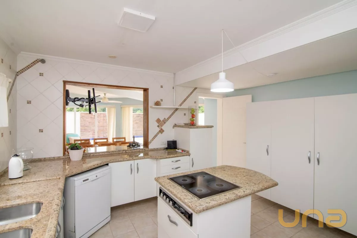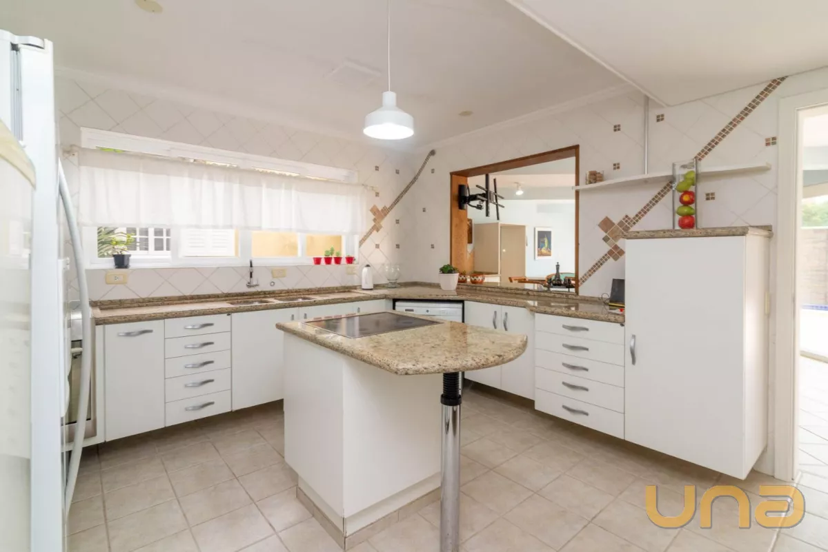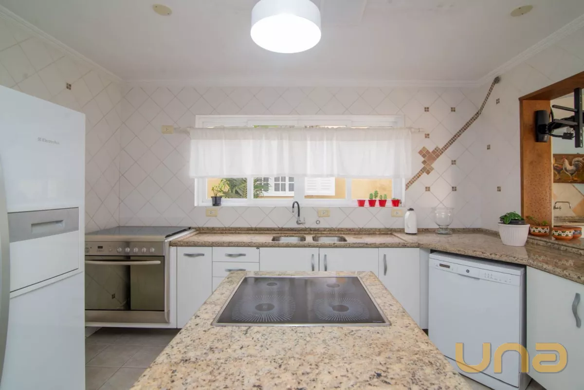 - Cozinha completa com armários e tampos em granito, ilha e eletrodomésticos