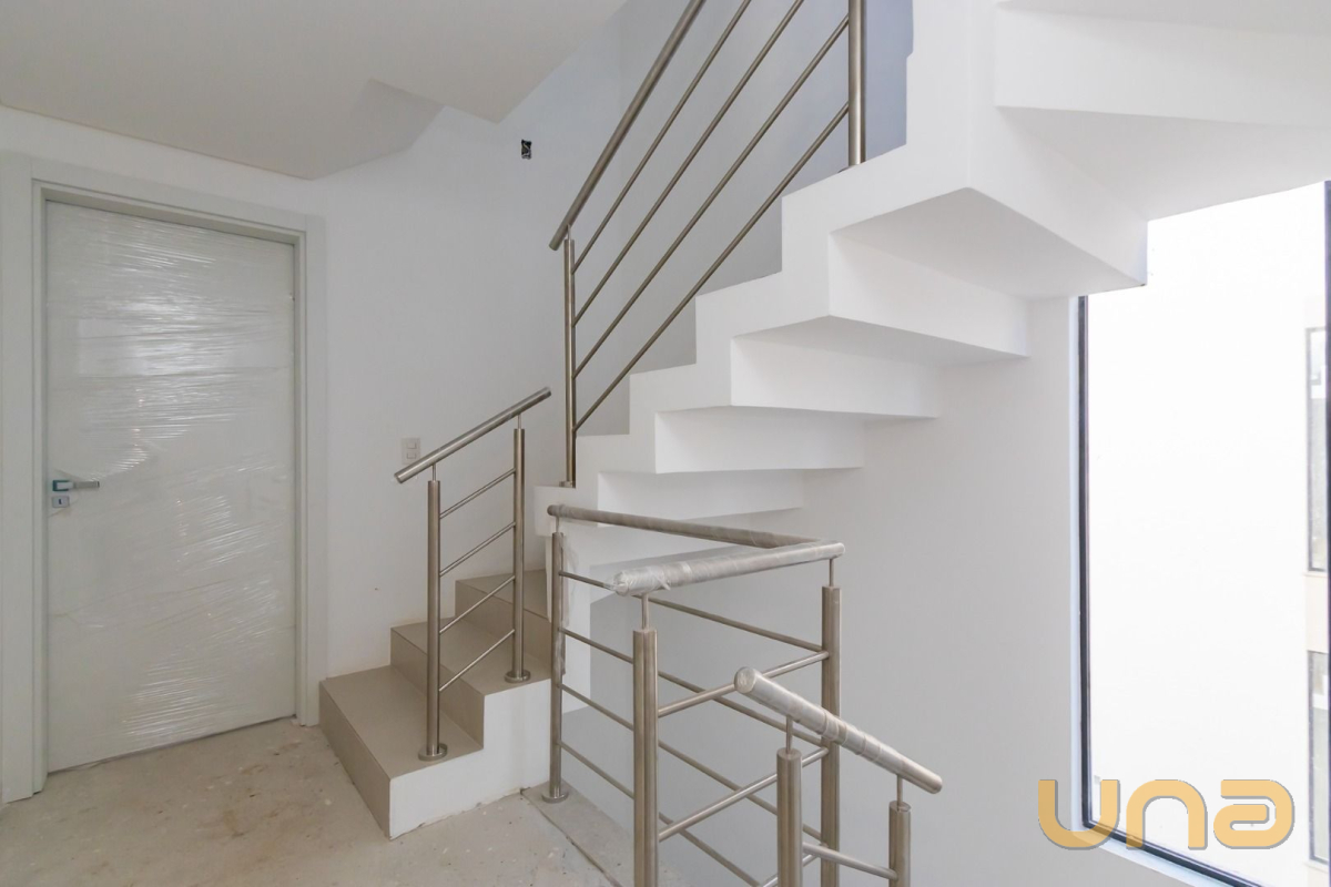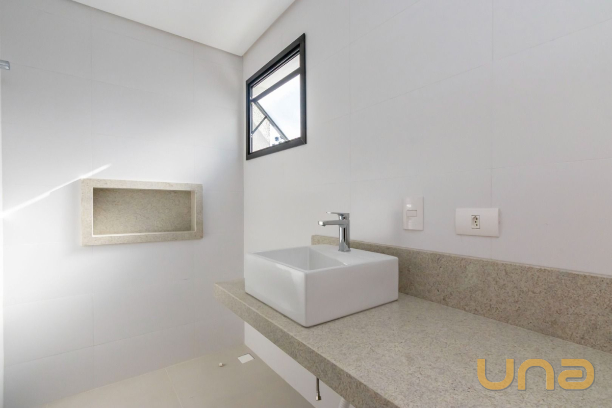 Pavimento Superior: 3 suítes, incluindo suíte master com sacada, espaço para closet e banheiro com pia dupla e acabamento de luxo.