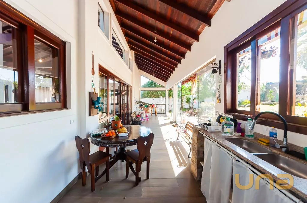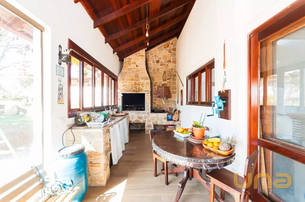 - Ambiente da cozinha integrada com sala de jantar, sala de estar com lareira, espaço para biblioteca ou escritório, além de um encantador jardim de inverno.