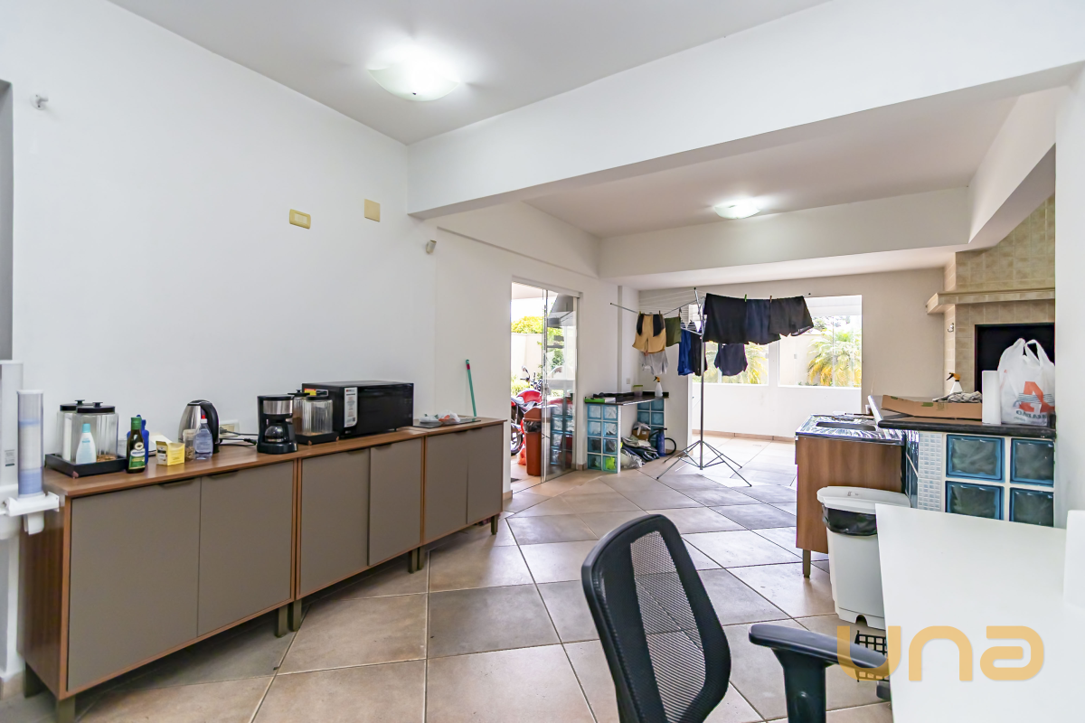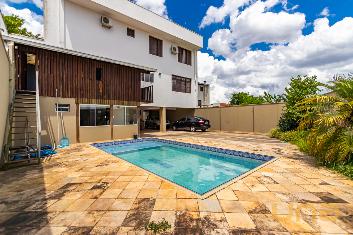 O imóvel dispõe de Sala para três ambientes com lareira, Cozinha ampla com pia e armários planejados, Sala de estar íntima com lareira, Escritório com armário. 1º andar: Cinco quartos sendo três suítes com banheira e um com sacada ampla, Sala de estar, Banheiro social. Área externa:Edícula ampla com portas de vidro, Churrasqueira a carvão com armários balcão e pia, Piscina, Área de serviço individualizada, Despensa