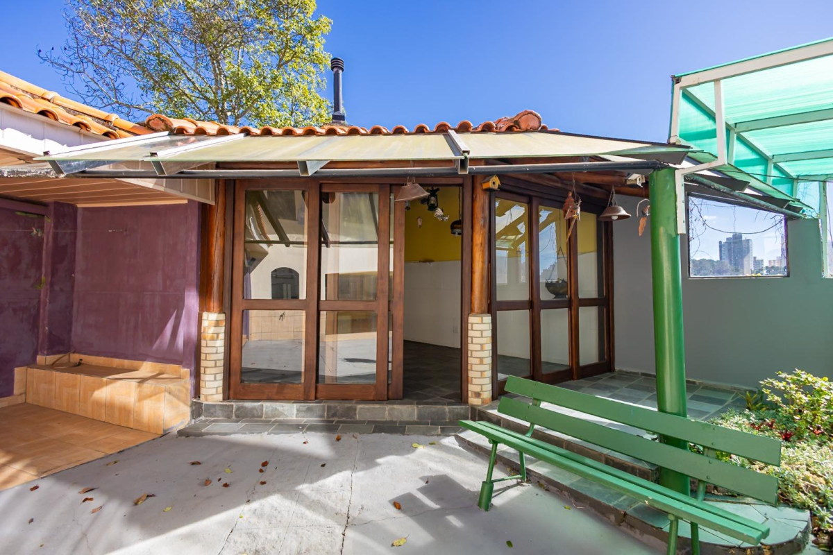 São 3 dormitórios (1 suíte), 3 salas amplas, espaço gourmet com churrasqueira e lareira junto ao quintal, area intima com acabamentos em madeira.