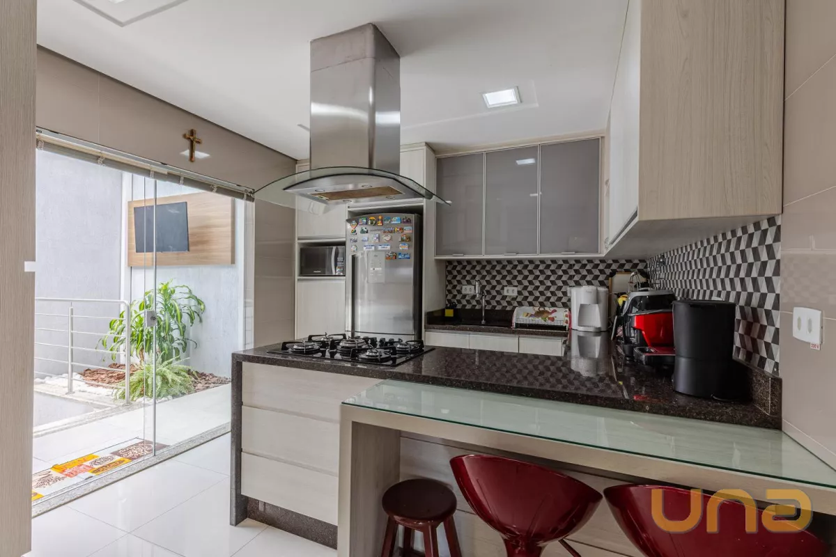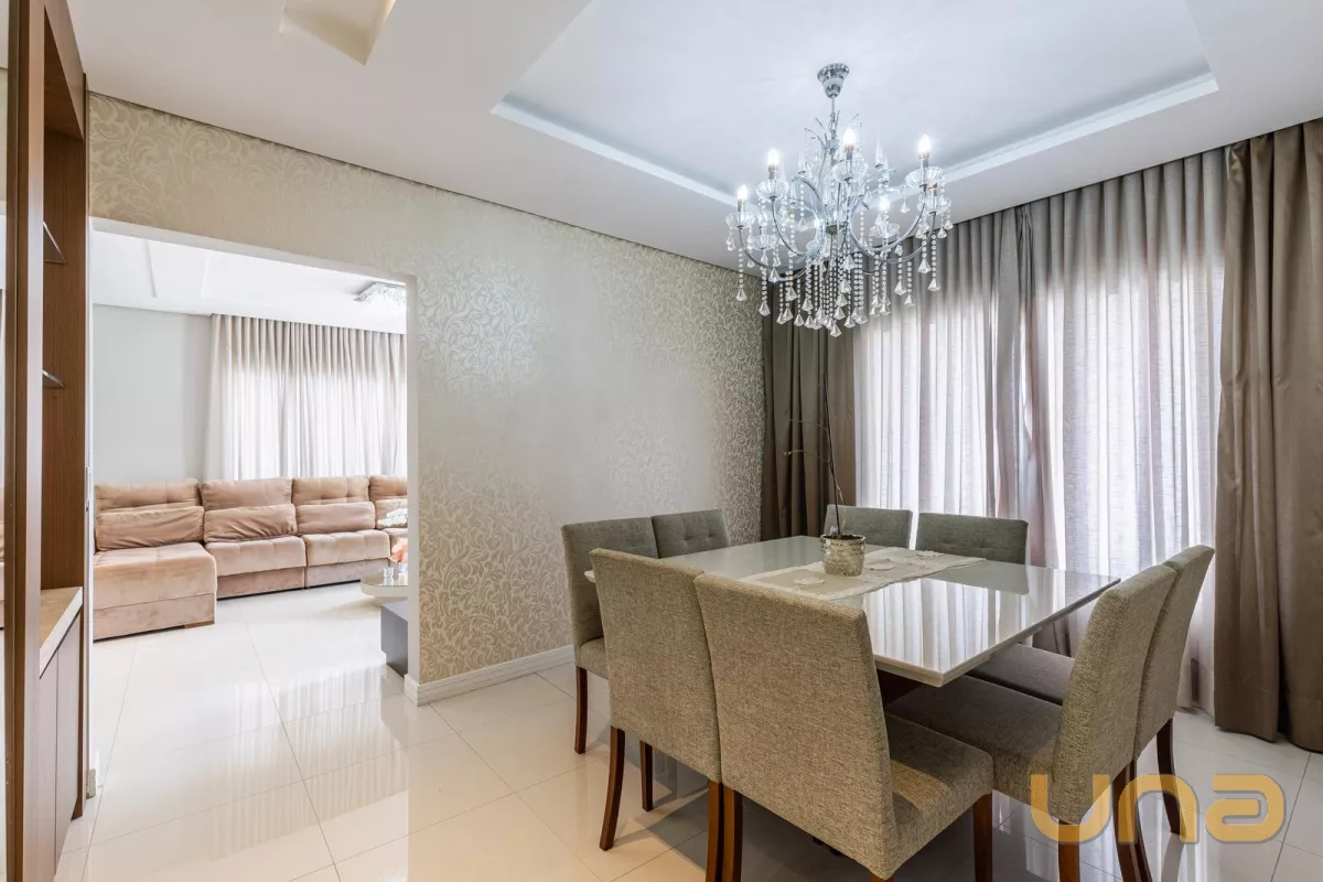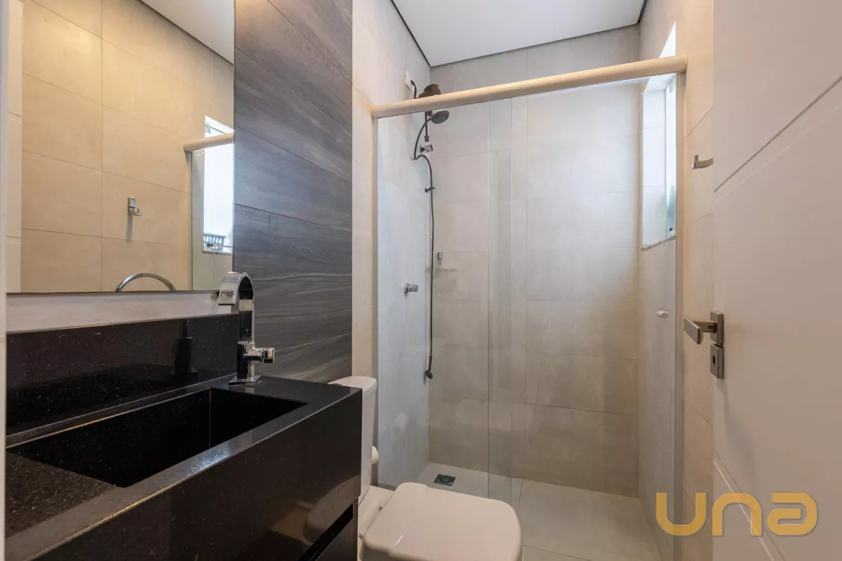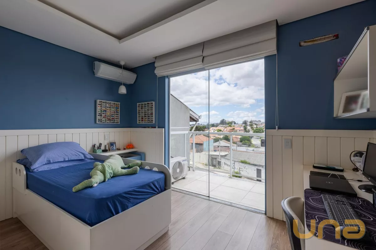 No pavimento superior, a casa conta com um amplo hall e três dormitórios, sendo uma suíte máster com sacada, ar-condicionado, closet com armários planejados e banheiro com hidromassagem. Os outros dois dormitórios também possuem sacadas, armários embutidos e ar-condicionado. O banheiro social tem acesso compartilhado com a suíte. O piso é laminado e as escadas em granito, garantindo sofisticação e durabilidade.
