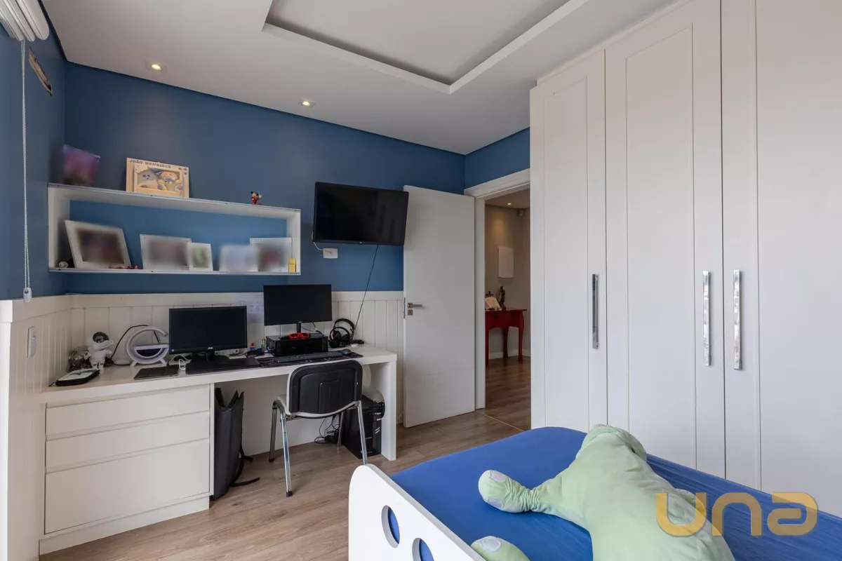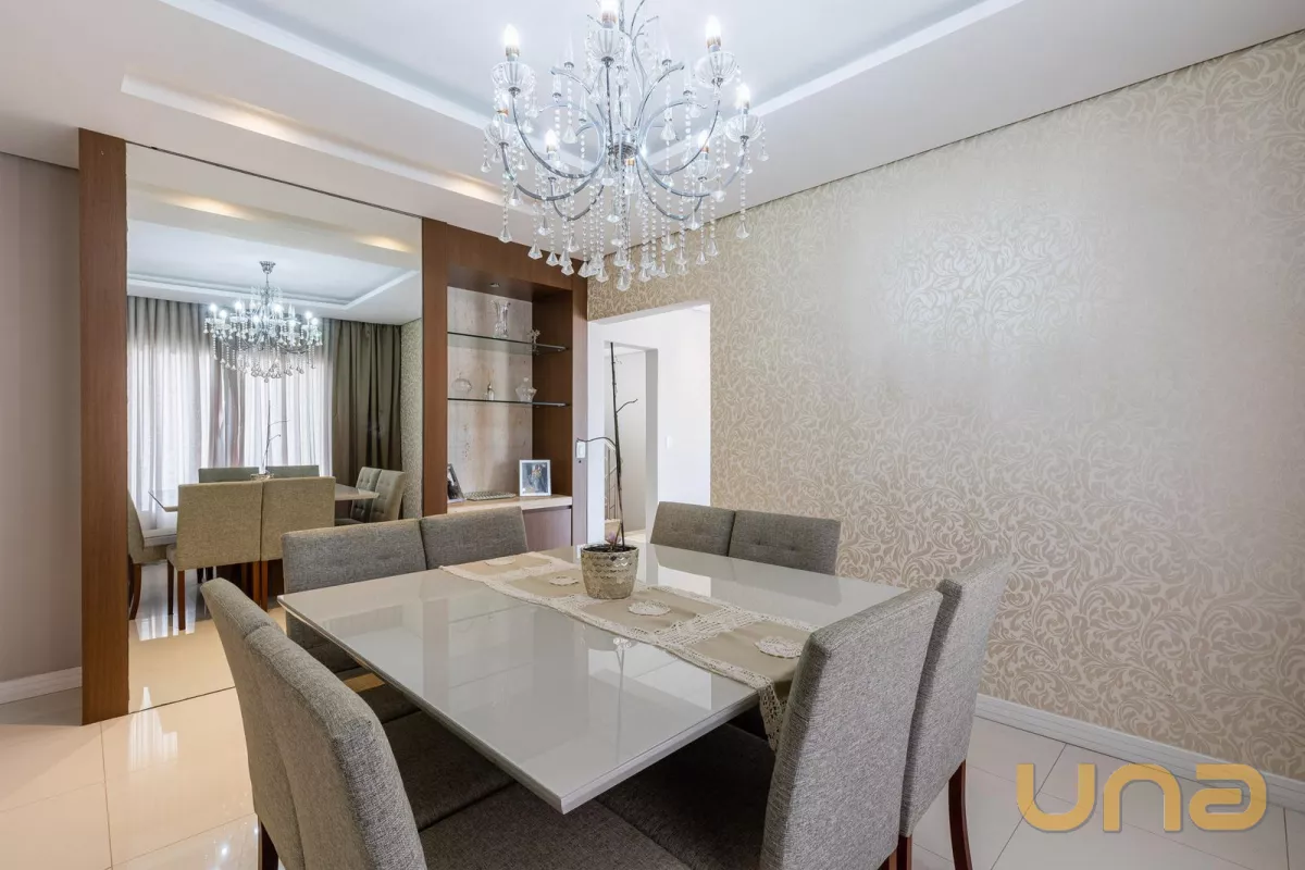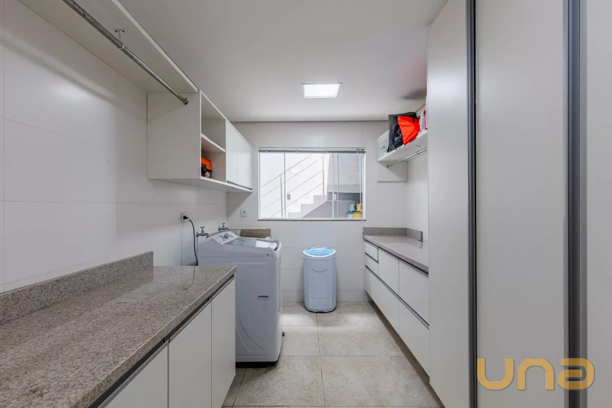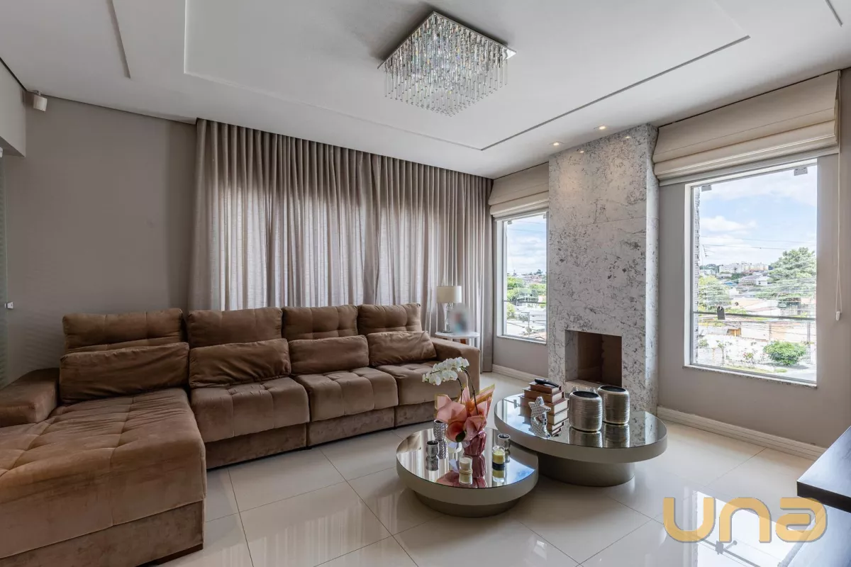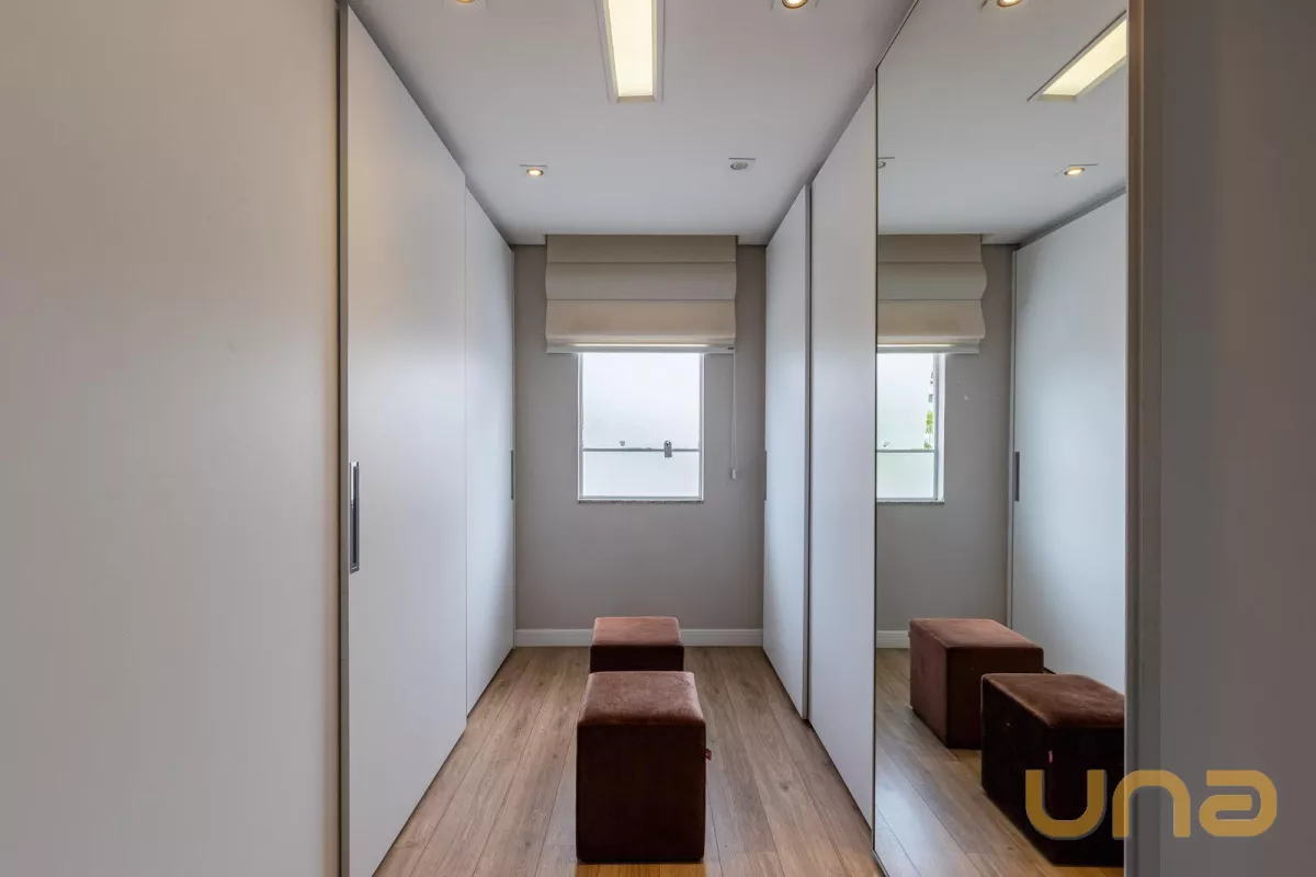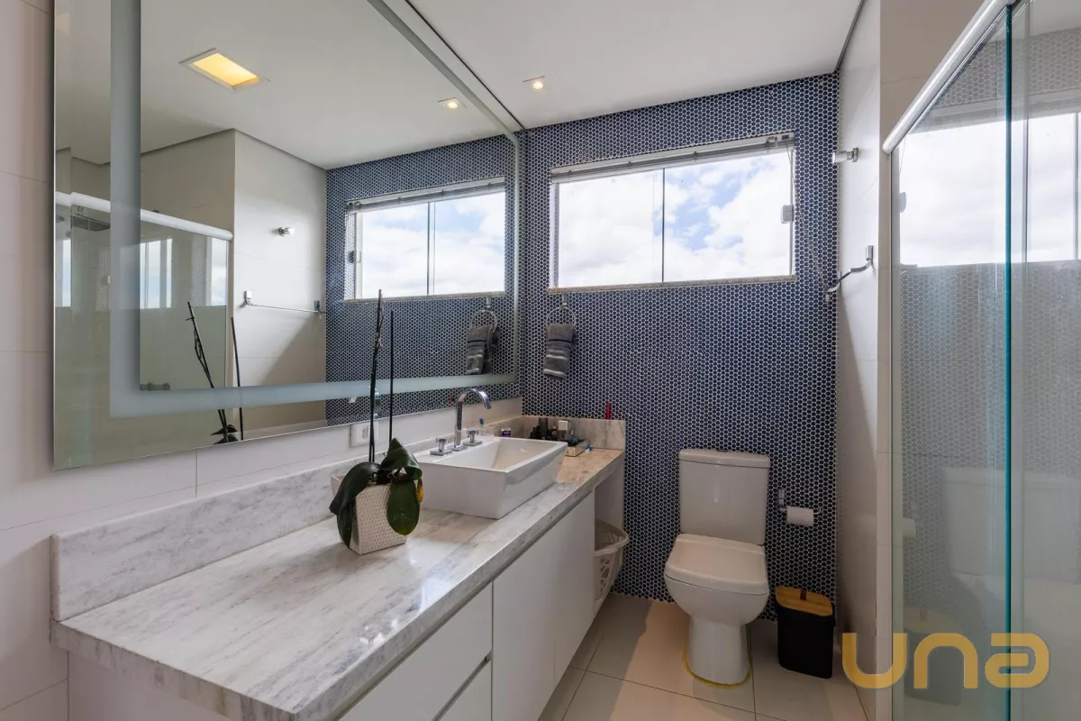 No segundo pavimento, encontram-se uma aconchegante sala de estar com lareira, uma ampla sala de jantar, escritório com estante e um banheiro social com box em vidro e tampo em mármore. O ambiente conta ainda com um espaçoso espaço gourmet, equipado com churrasqueira, bancada em granito e banheiro de apoio, além de um jardim de inverno com teto retrátil. A cozinha é ampla, com armários planejados, bancada em granito, cooktop, coifa e porta de correr em vidro, integrando praticidade e modernidade. Todo o pavimento possui piso em porcelanato.