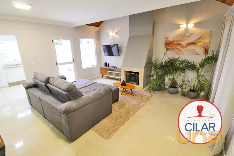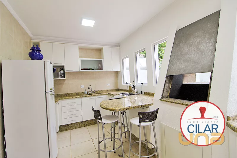 Reformada com extremo bom gosto, a casa conta com decoração cuidadosamente planejada, desde cortinas e persianas até a mobília, toda nova. A distribuição dos ambientes é prática e acolhedora, possui sala de TV com lareira, sala de jantar, cozinha completa com armários, fogão, refrigerador e churrasqueira, lavabo, garagem coberta para 2 carros, portão lateral com acesso à área de serviço e fundos do terreno, estrutura de gás com aquecedor já instalado.