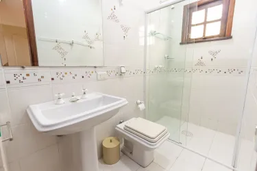 - Suíte 3: Piso superior, com beliche e banheiro com box em vidro temperado