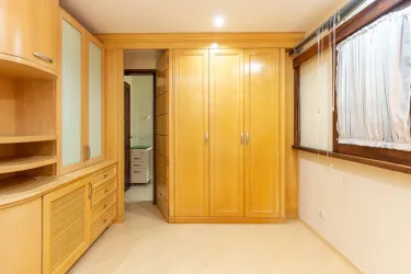 - Suíte 1: armários, piso laminado, persianas e banheiro com box em vidro temperado.