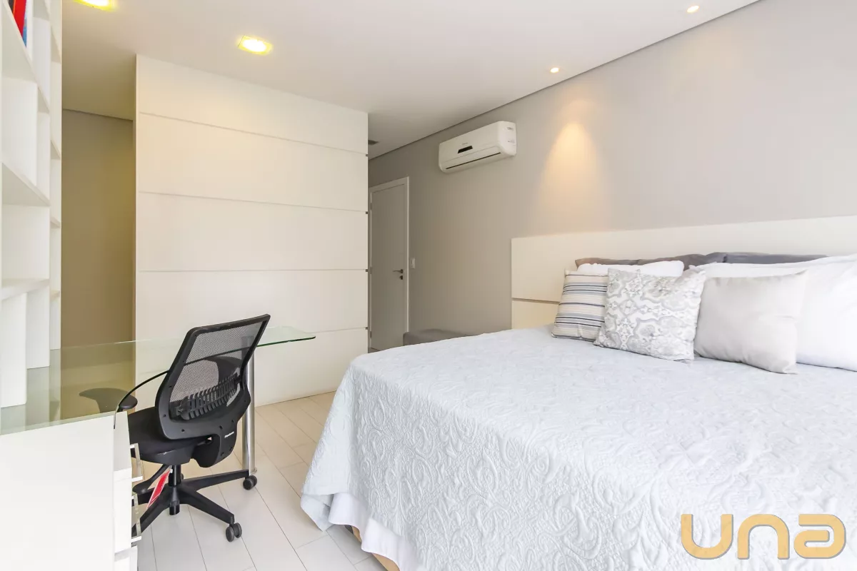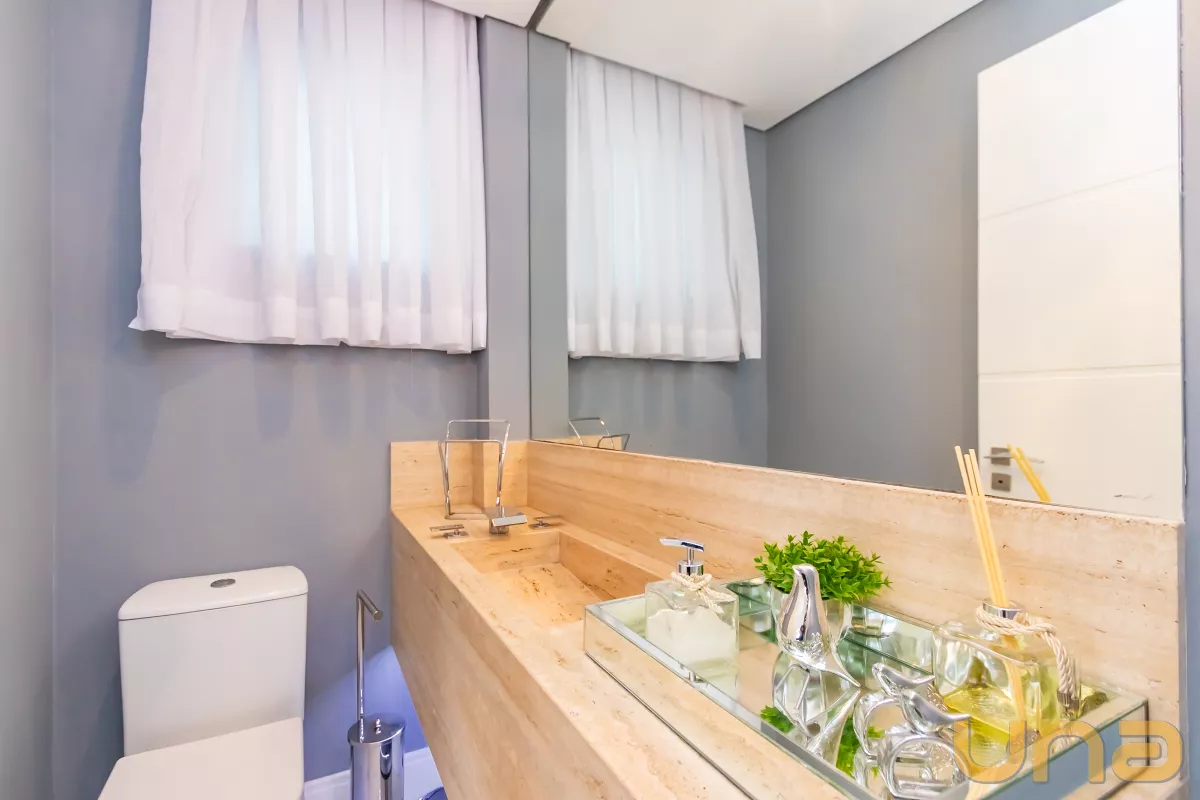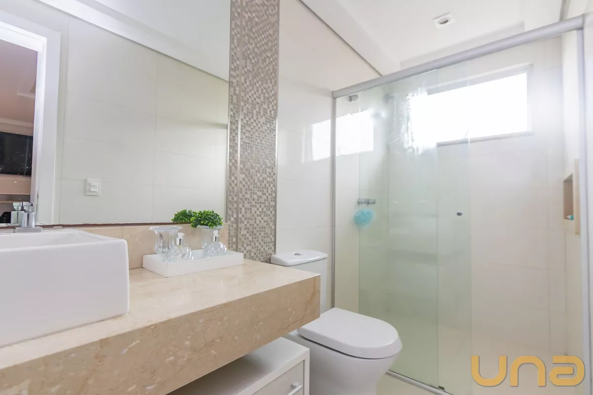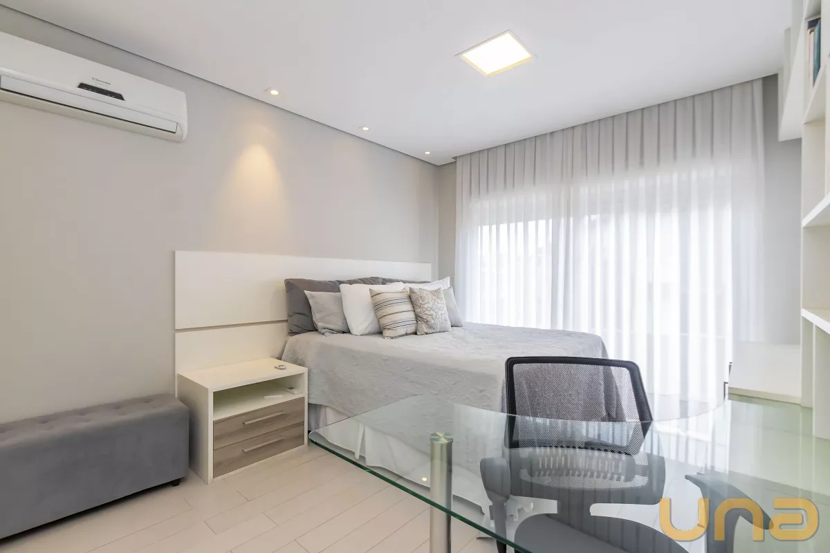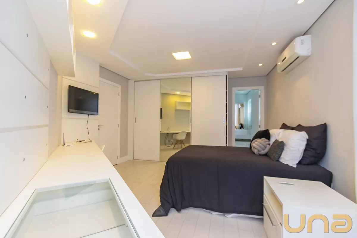 Acabamentos: Piso em porcelanato e laminado, teto rebaixado em gesso com iluminação embutida em led e aquecimento a gás.