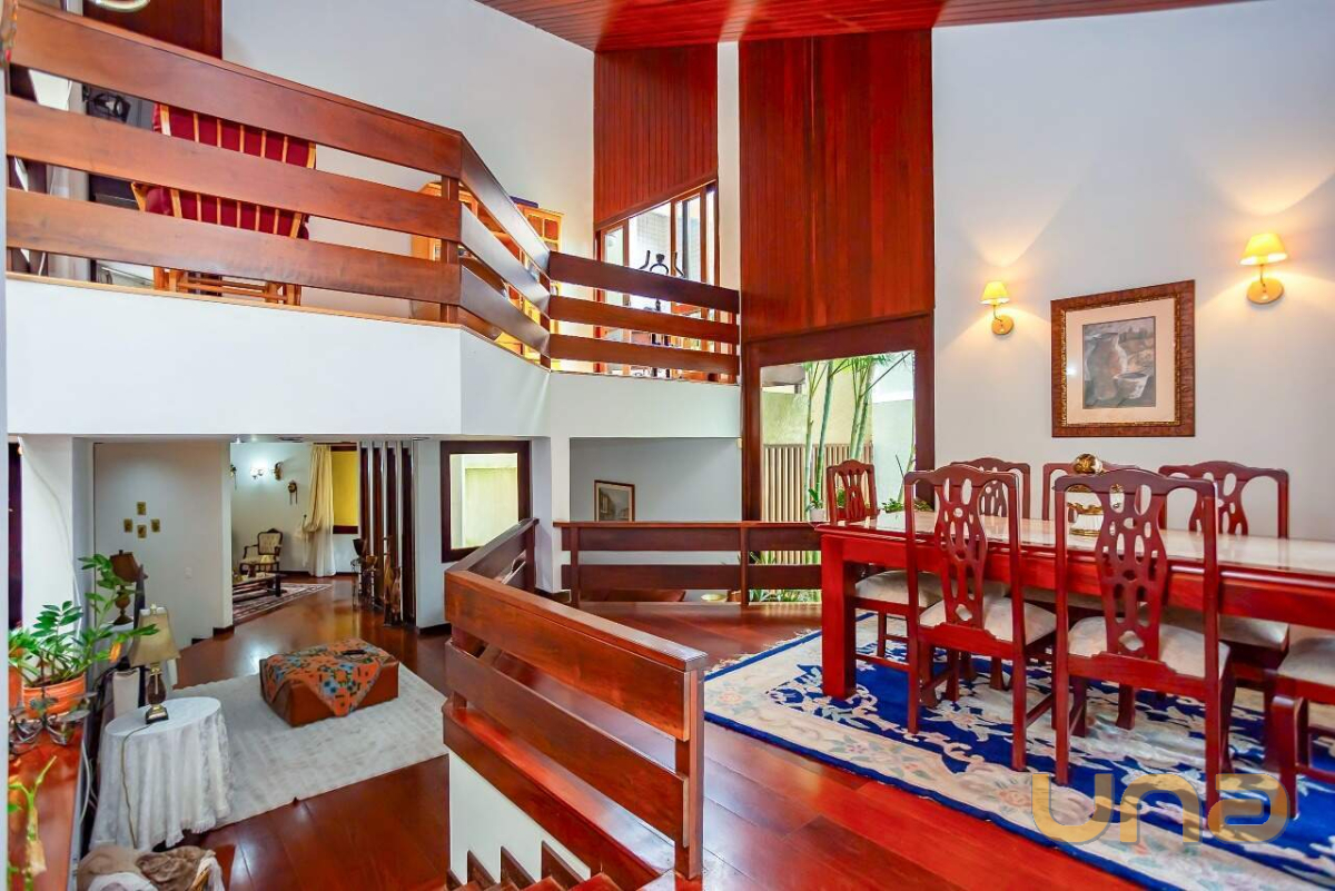 Detalhes: Residência de 472 m², em terreno de 875 m² contendo: hall de entrada, sala de estar e de visita, sala de jantar com vista para o jardim, copa, cozinha com armários, adega, despensa e escritório, dependencia completa para empregada e jardim ao redor da casa com vista integrada.