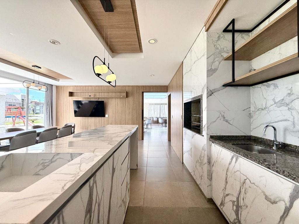 - Ampla área gourmet com banheiro, churrasqueira, integrada com o jardim e para desfrutar os seus momentos de lazer uma deliciosa piscina;