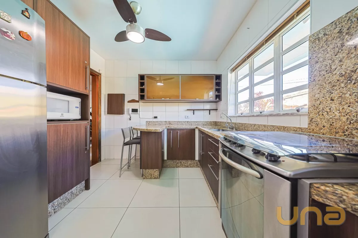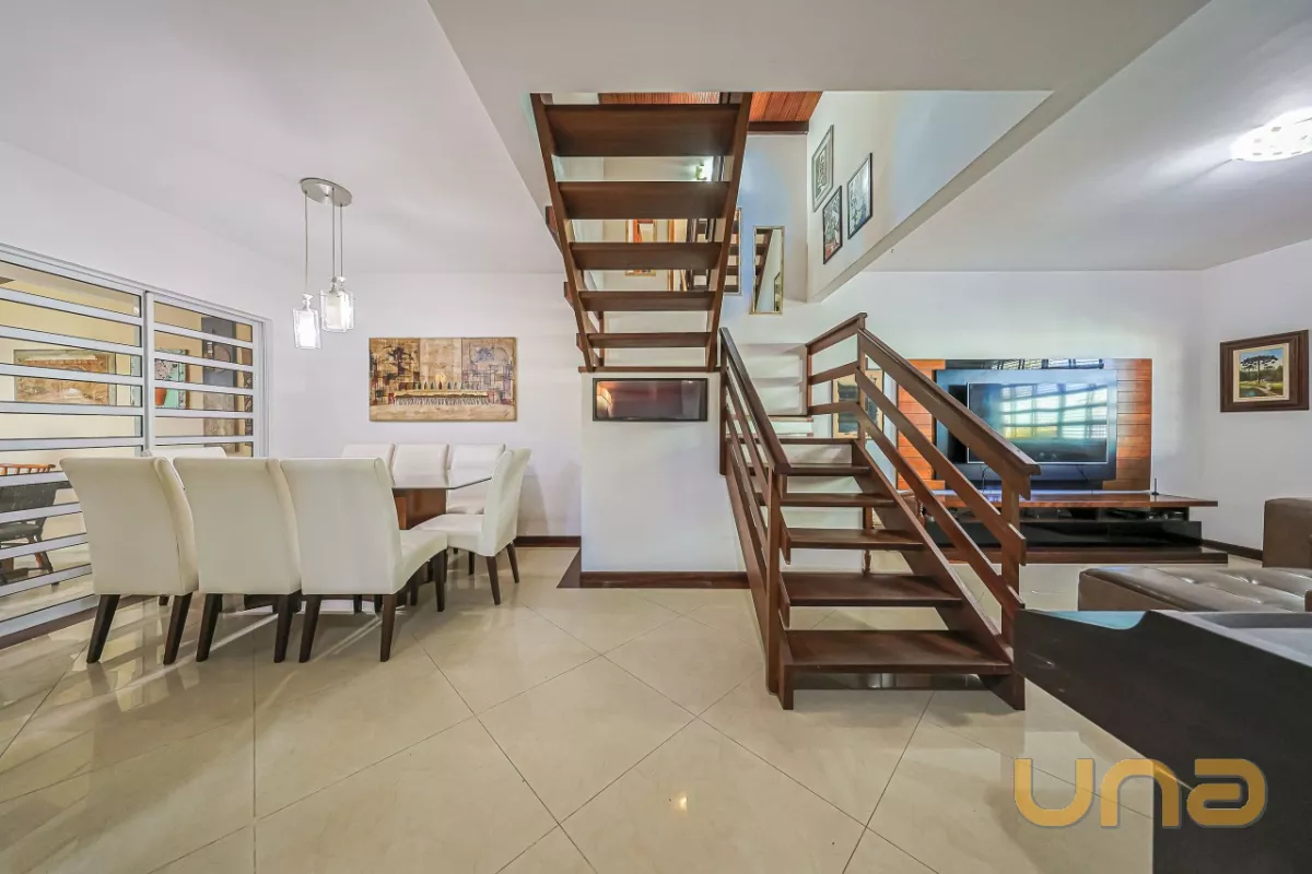 PISO INFERIOR: SALA, COPA, LAVABO E COZINHA COM MÓVEIS PLANEJADOS, LAVANDERIA COM BANHEIRO SOCIAL (E DE APOIO PARA A PISCINA); AMPLA ÁREA GOURMET COM ARMÁRIOS E CHURRASQUEIRA.