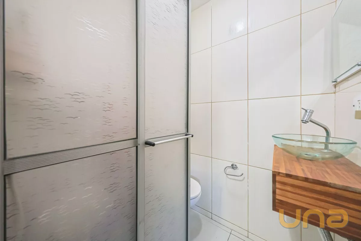 SEGUNDO PISO: 03 DORMITÓRIOS COM AR CONDICIONADO E ARMÁRIOS, SENDO A SUÍTE COM SACADA. BANHEIROS SOCIAL E PRIVATIVO COM ARMÁRIOS, BOX DE VIDRO E AQUECIMENTO À GÁS.