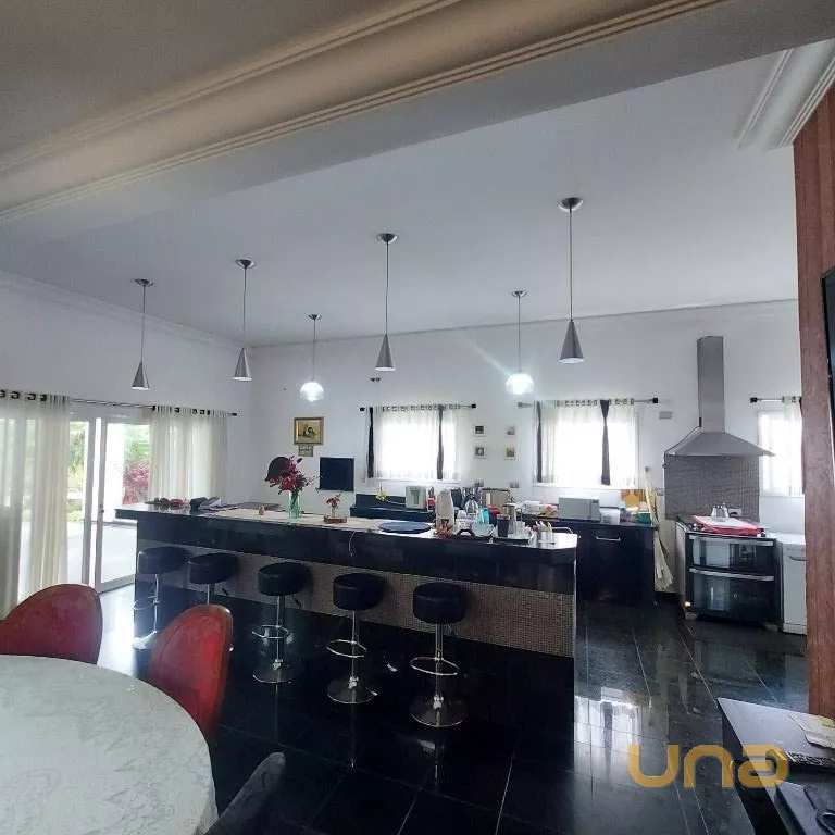 Amplo living com espaços integrados, cozinha americana com piso em granito;
