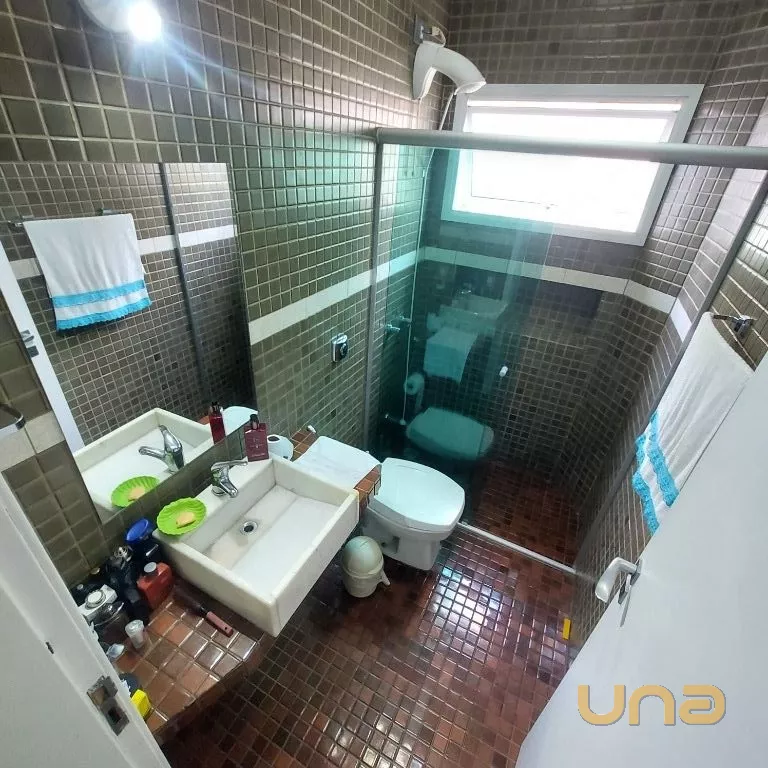 Três suítes, todas com piso em madeira e banheiros pastilhados;