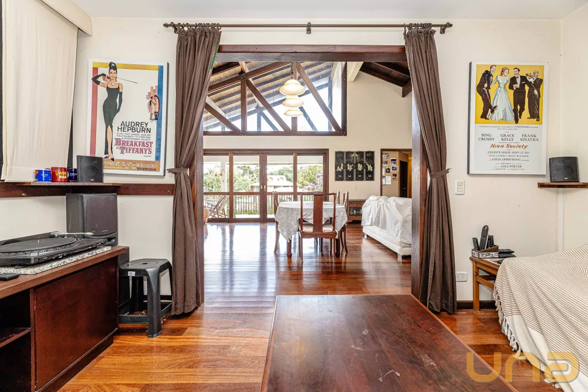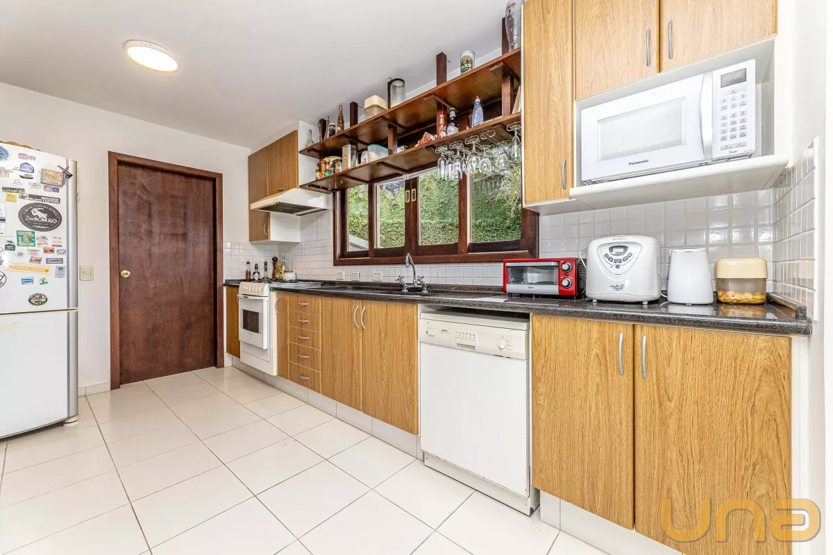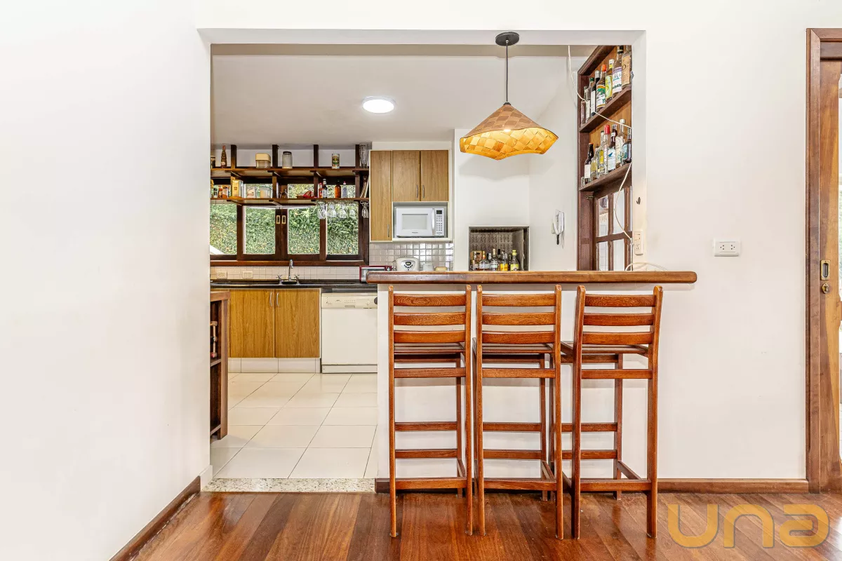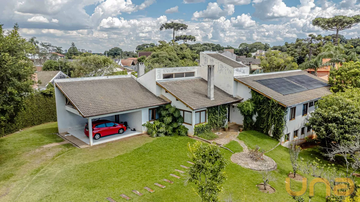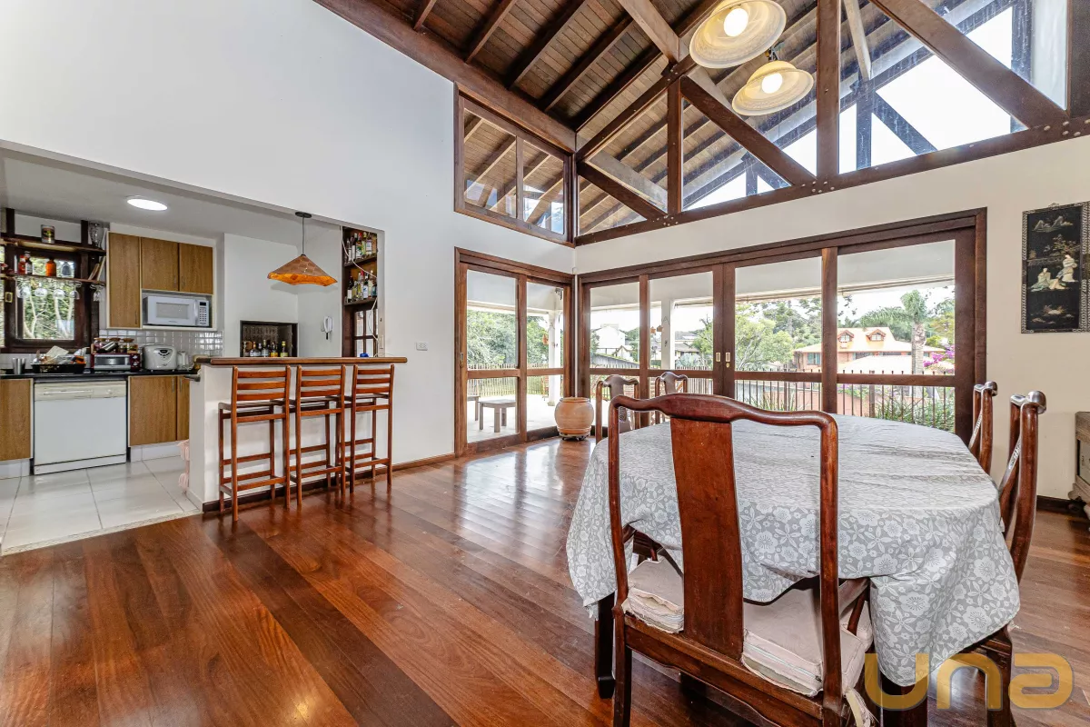A casa conta com 4 suítes, salas de estar, jantar e íntima, copa e cozinha estilo americano com armários planejados e tampos em granito, lavabo, lavanderia, 3 churrasqueiras (1 interna, 1 externa e 1 no subsolo), abrigo para 2 carros + estacionamento para vários carros. no subsolo, um salão com churrasqueira, depósito e banheiro.