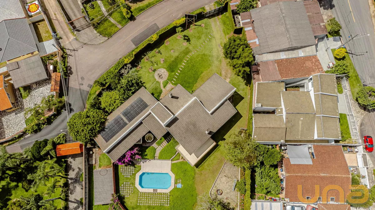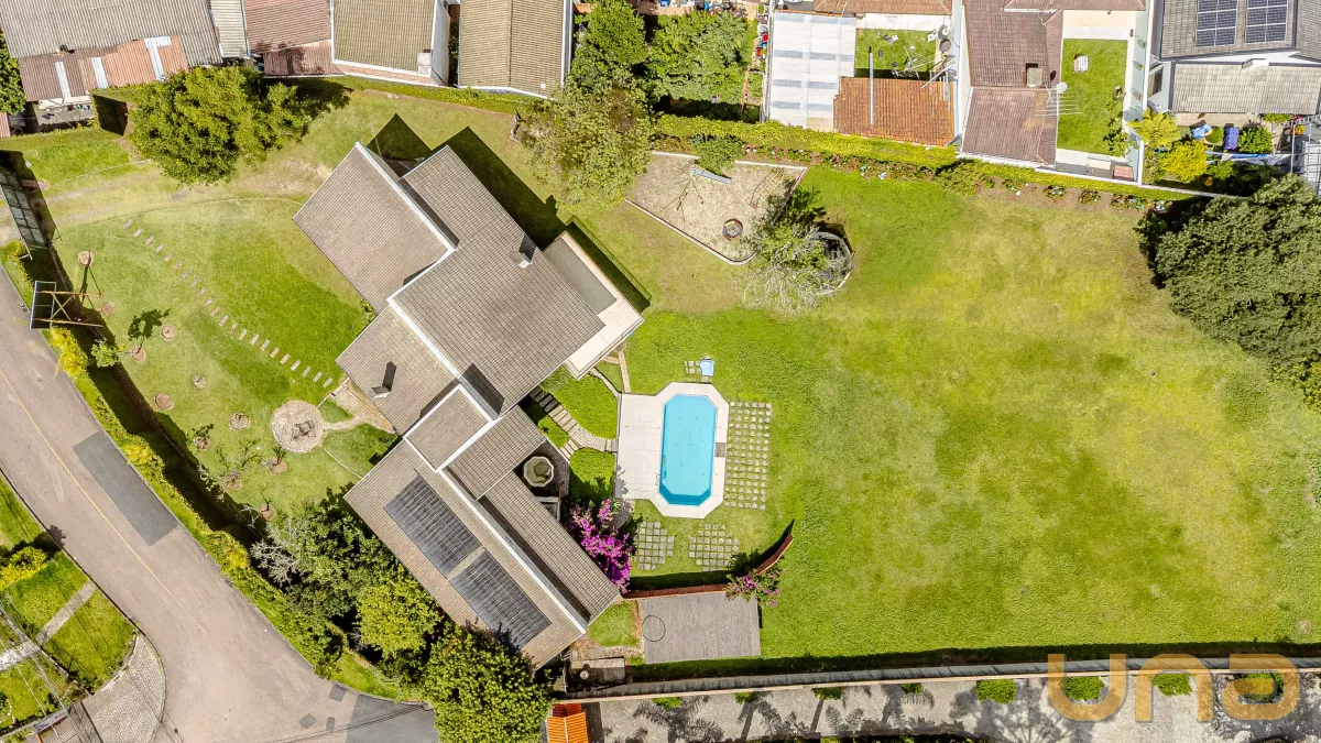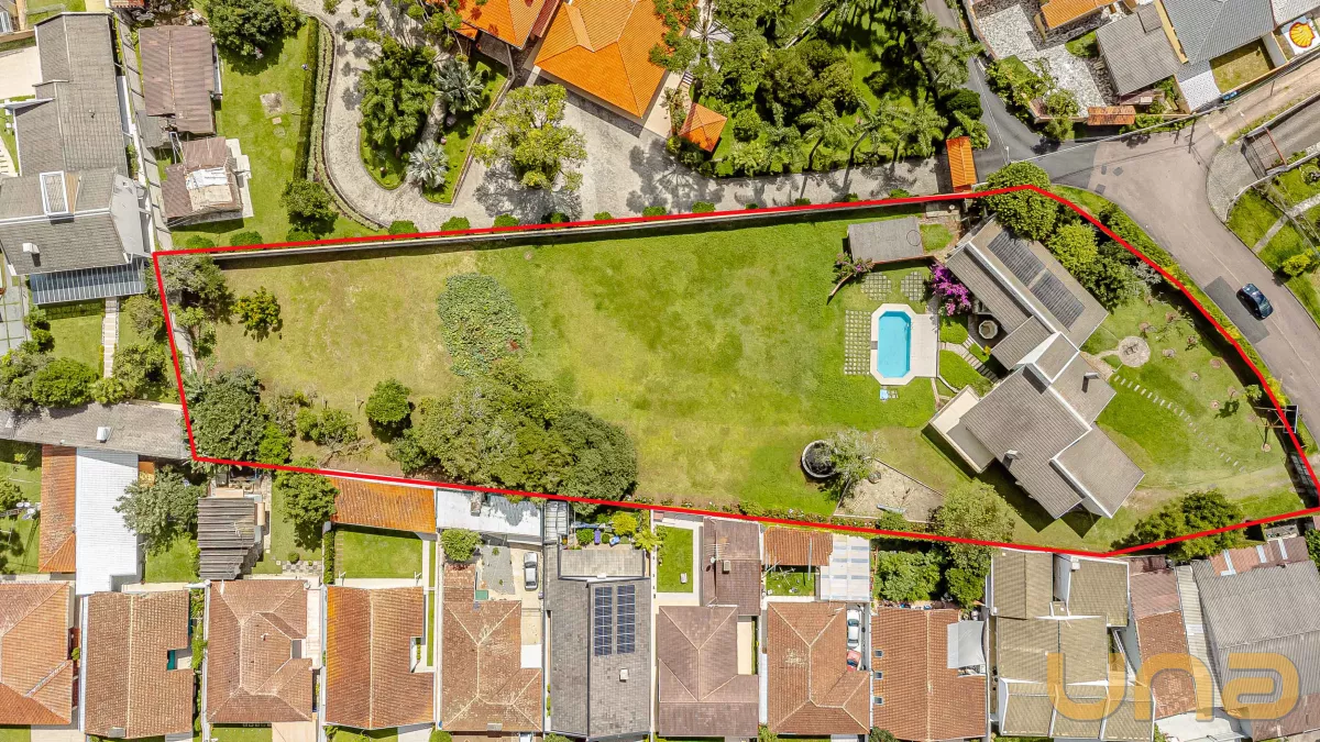 A residência é térrea, com aproximadamente 400 m² (sendo 287,50 m² averbados), construída num belíssimo terreno de 3.688 m², com as seguintes medidas - 50,50 x 99 x 24,10 + 102 x 24, topografia muito boa, praticamente plano.