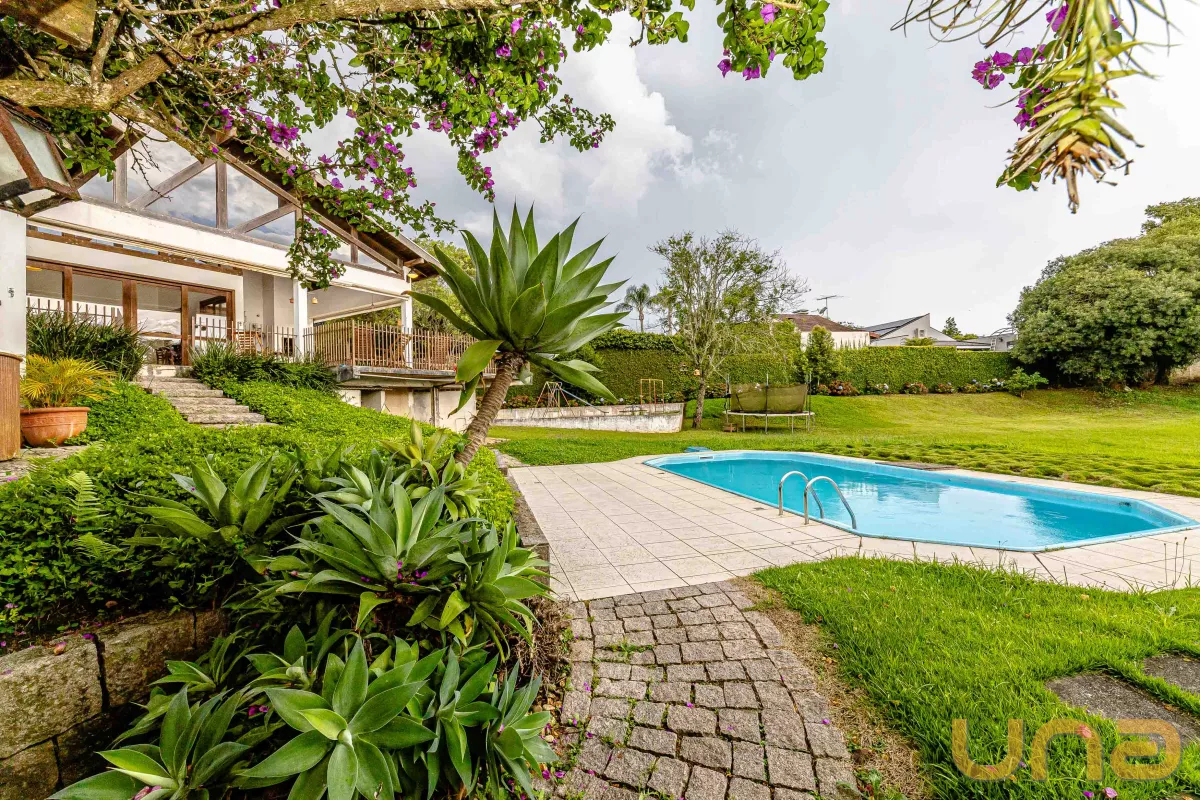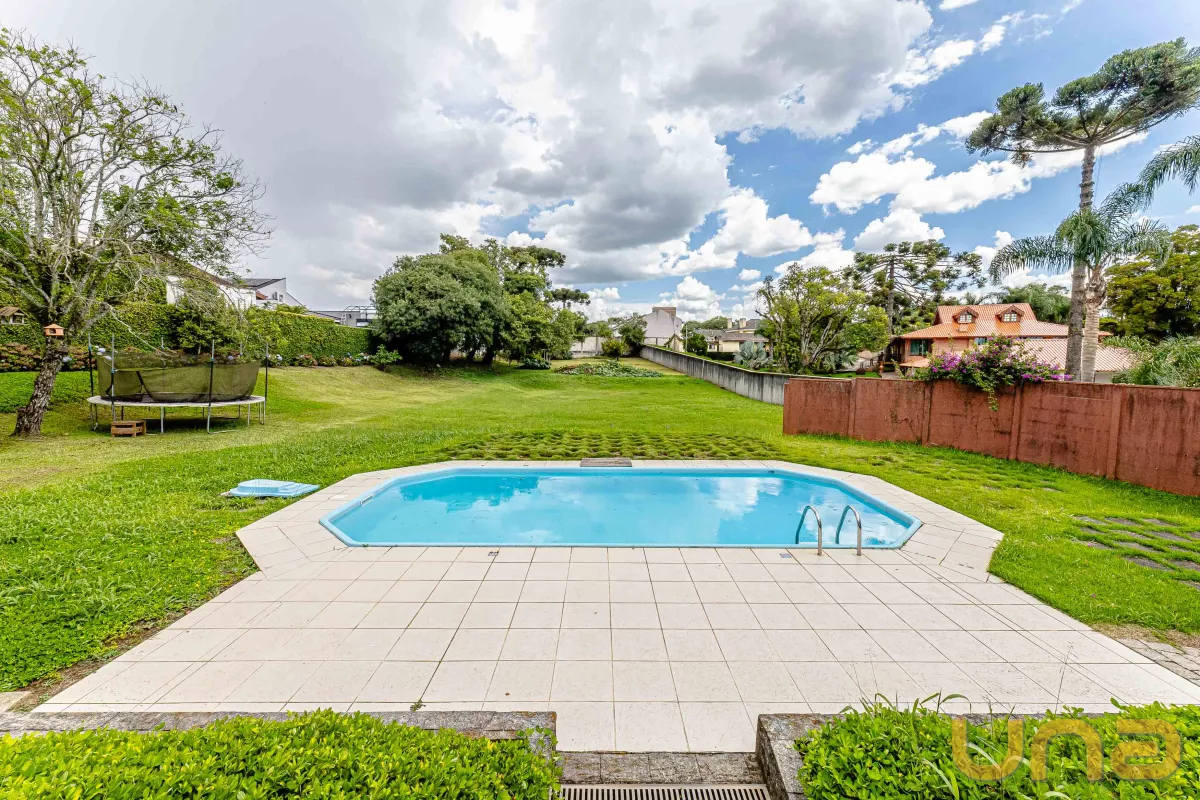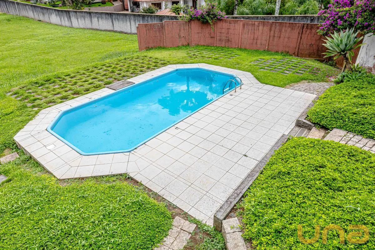 A parte externa conta com 1 piscina, pomar de frutas e um lindo espaço de jardim e quintal todo gramado para você usar sua criatividade.