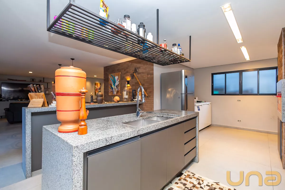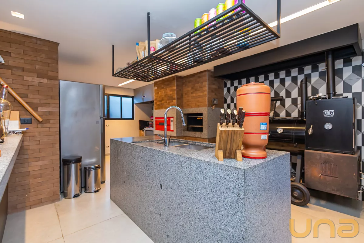 - Área gourmet com churrasqueira integrada à sala de estar e ao quintal