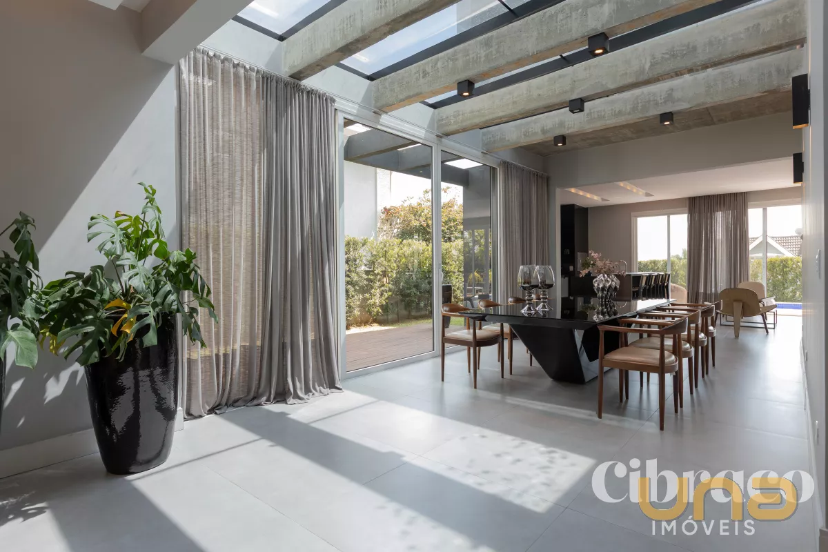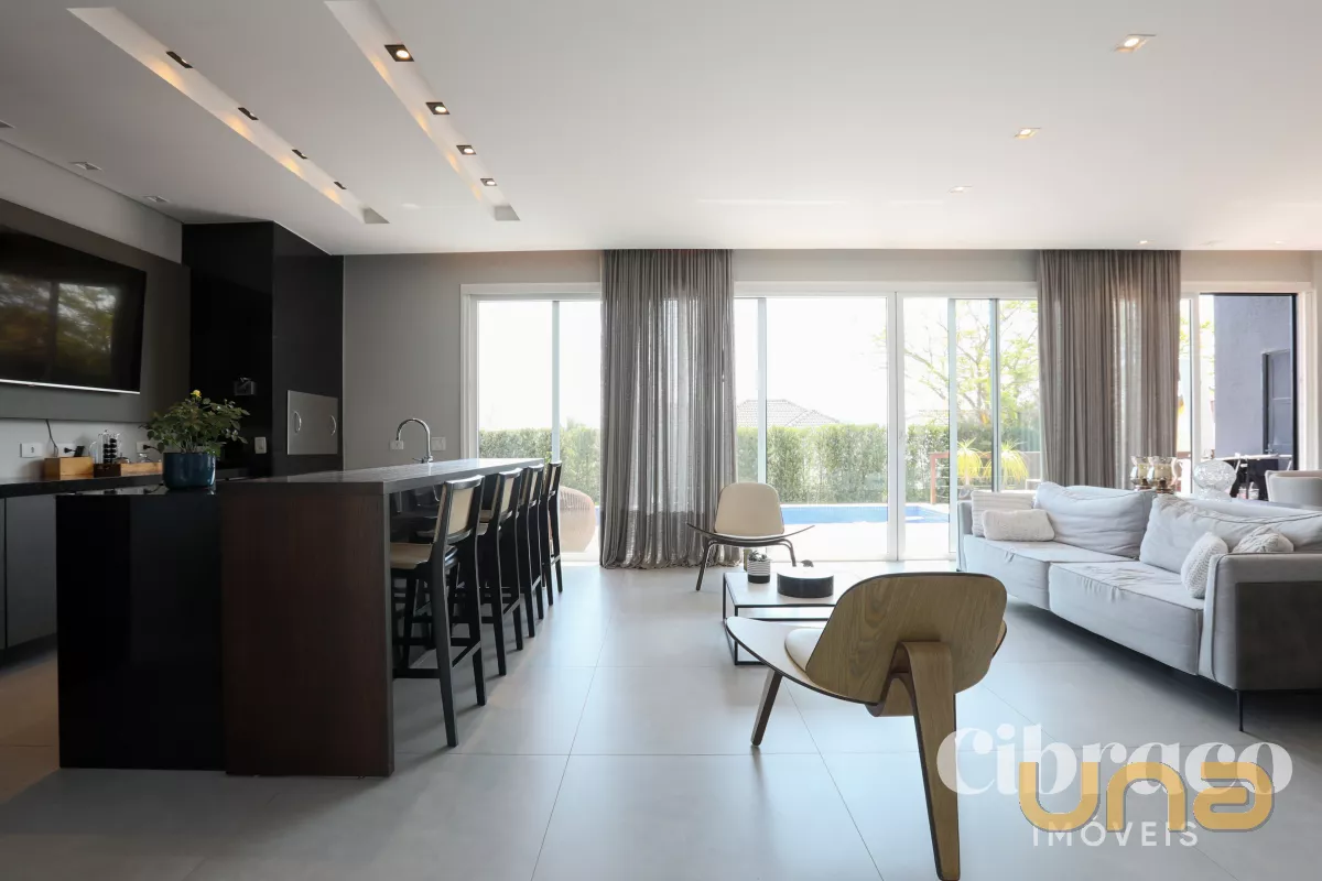 Com 541 m², esta residência traduz o verdadeiro conceito de alto padrão. A fachada contemporânea e os ambientes integrados refletem um projeto arquitetônico pensado em cada detalhe. No térreo, o living amplo com home theater conecta-se à sala de jantar com teto de vidro, trazendo luminosidade e sofisticação. O espaço gourmet completo se integra à cozinha com ilha central e à área externa, que conta com piscina de borda infinita e deck em madeira, proporcionando momentos únicos de lazer e contemplação. O pavimento superior abriga 4 suítes amplas, além de armários para rouparia na circulação, garantindo conforto e funcionalidade. *Valores sujeitos a alterações. Ligue agora e agende sua visita!