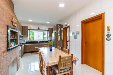 -Uma churrasqueira gourmet e um fogão a lenha fazem parte deste espaço, criando a atmosfera ideal para confraternizações e deliciosos almoços em família.