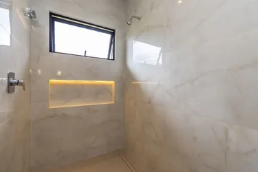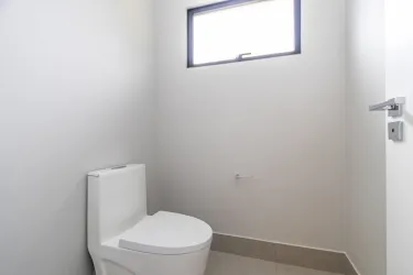 ** Toda a casa com piso em porcelanato no mesmo padrão, dando uniformidade e aquecido nas áreas privativas.