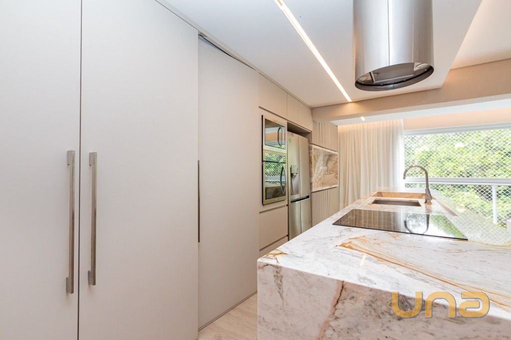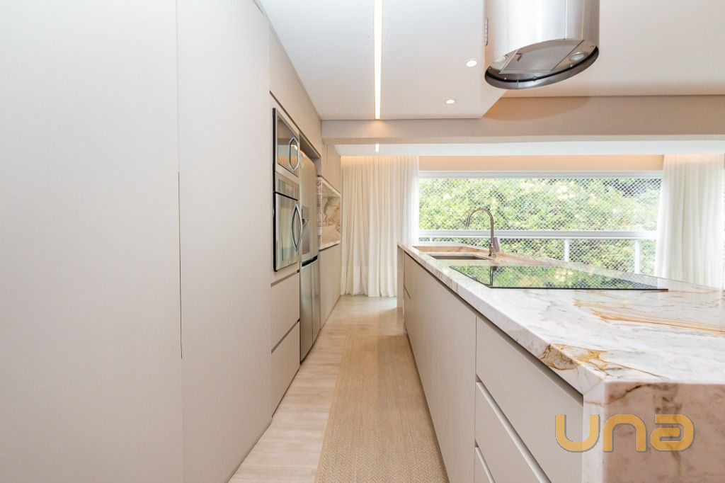 Com uma vista privilegiada para o bosque, total privacidade e excelente incidência de sol da tarde, o imóvel apresenta acabamentos de alto padrão, incluindo revestimentos em mármore nos banheiros e cozinha, piso vinílico e projeto original com 4 suítes.