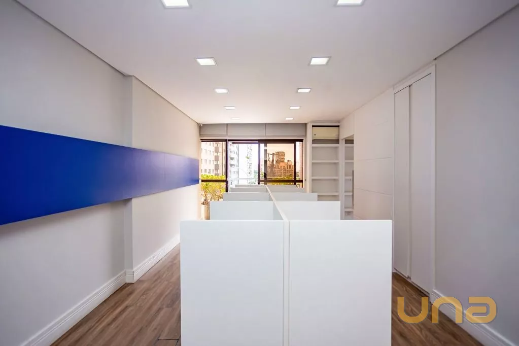 Este conjunto comercial de 240 m², localizado no prestigiado bairro do Batel, oferece um andar inteiro com uma vista privilegiada da Praça do Japão, garantindo um cenário inspirador para sua equipe e clientes.