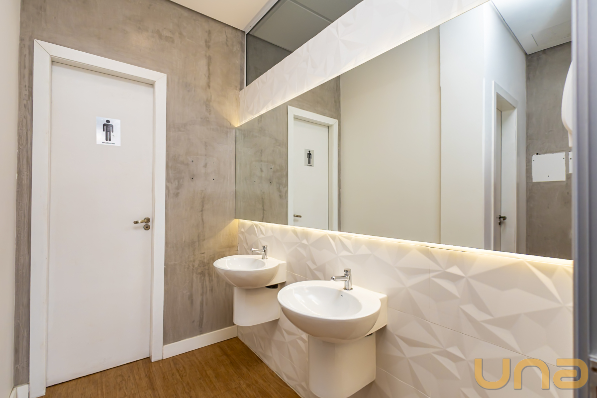 Área comercial com vão livre podendo ser adaptada a necessidade de cada cliente, pé direito alto, as divisórias são em drywall. Imóvel em dois pavimentos, lojas térreas e sobrelojas no 1º pavimento. São 2 unidades independentes (lojas 02 e 03) mas que estão interligadas com duas escadas de acesso ao primeiro pavimento.