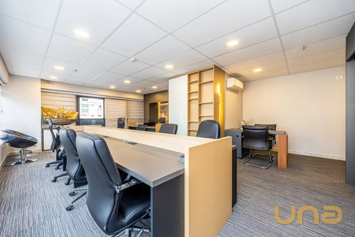 O condomínio THE FIVE - EAST BATEL oferece instalações modernas, incluindo sala de reunião, auditório, recepção e copa.