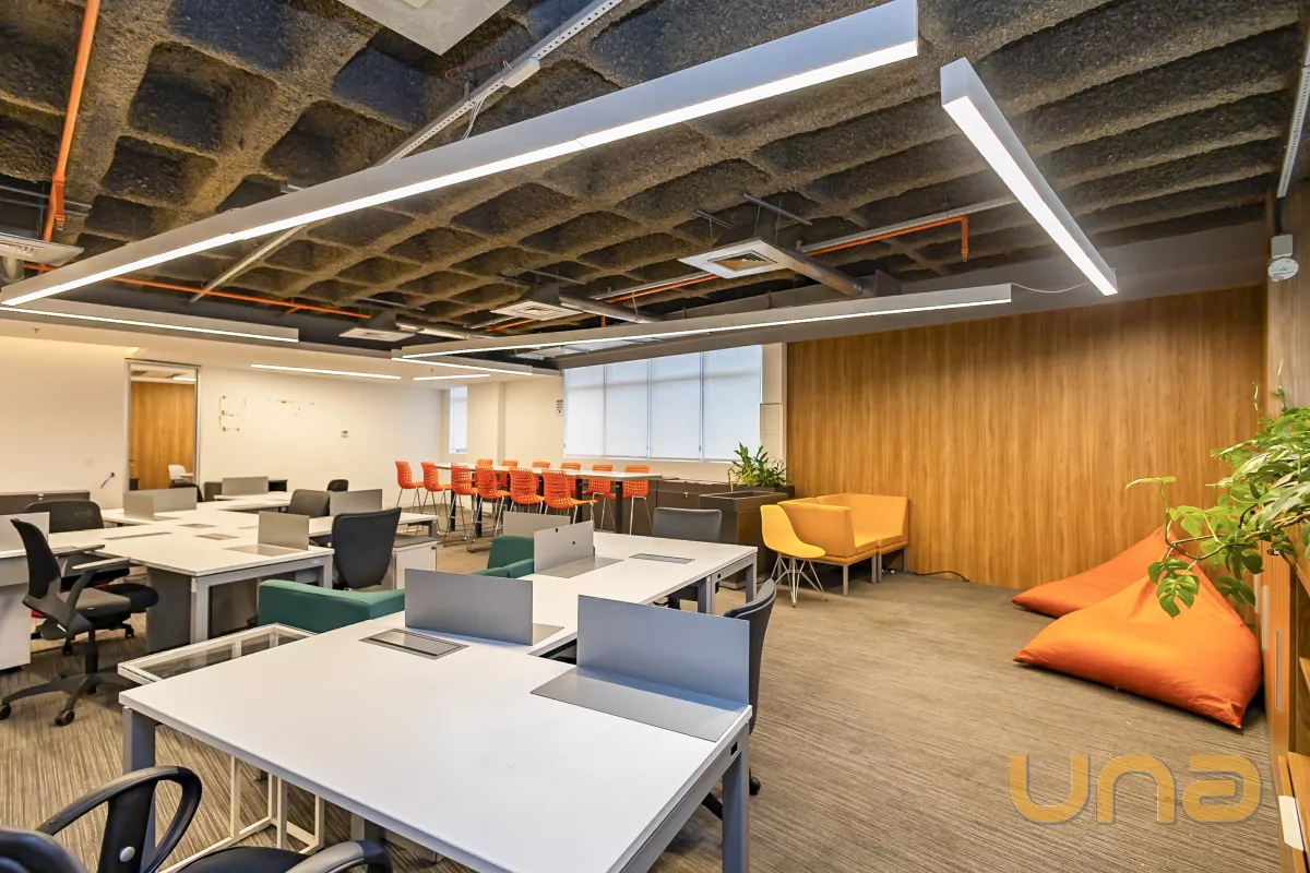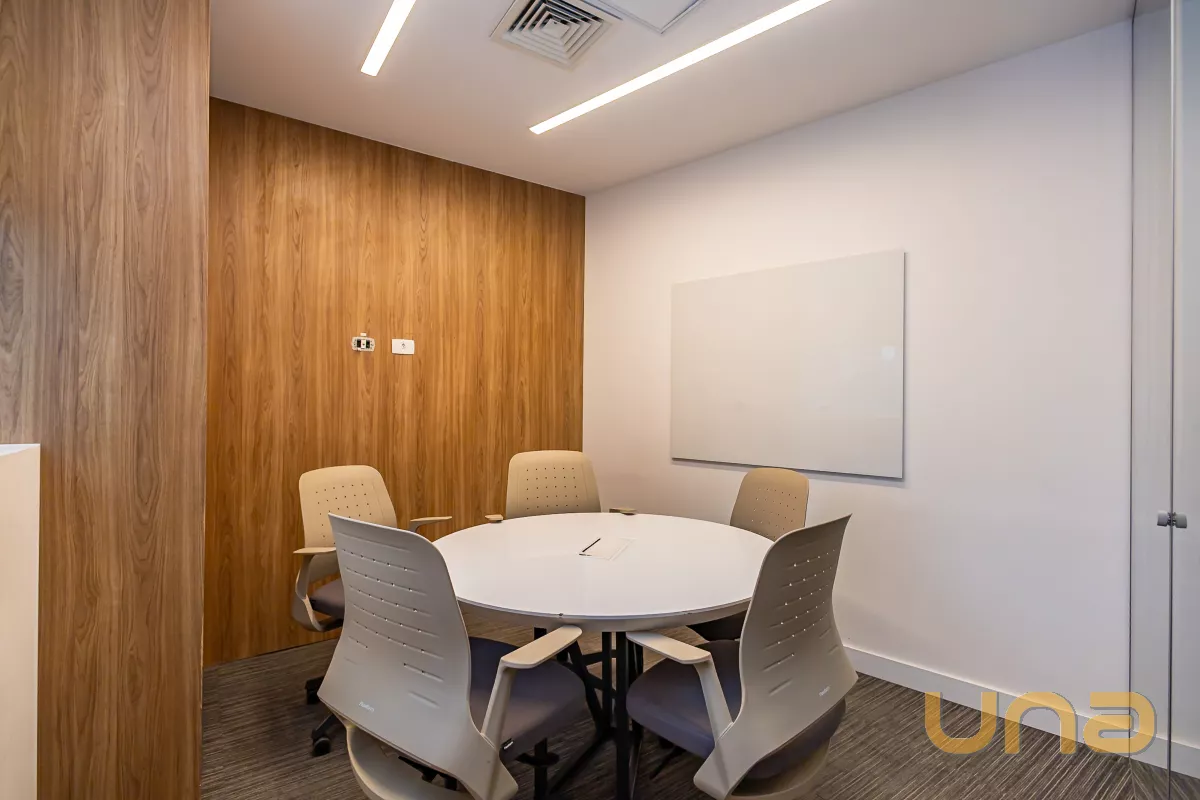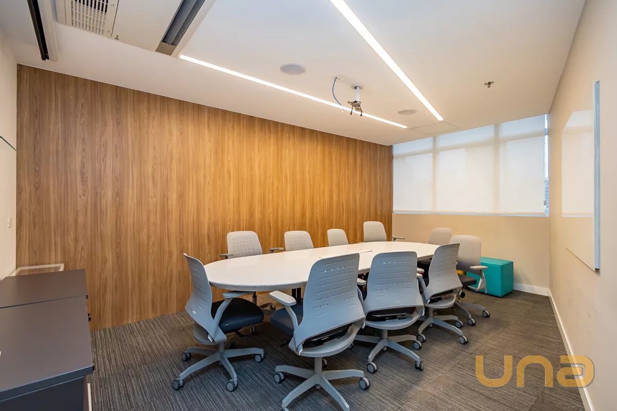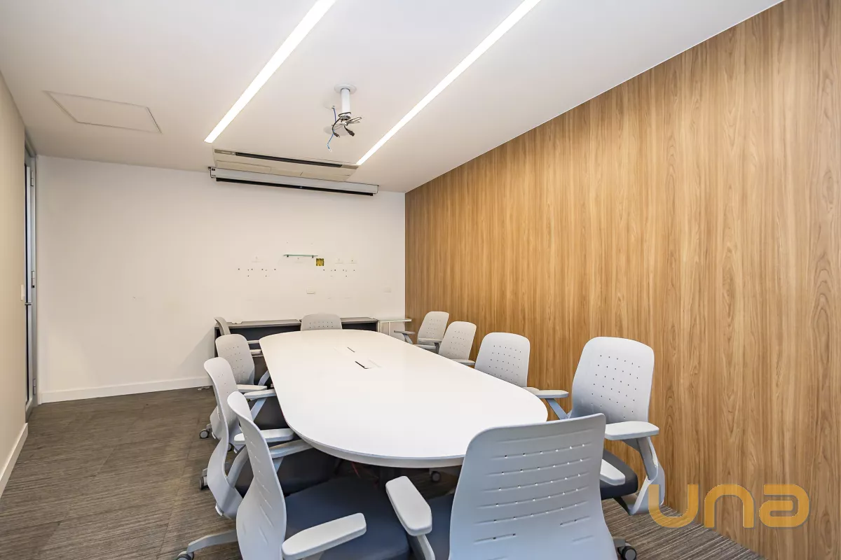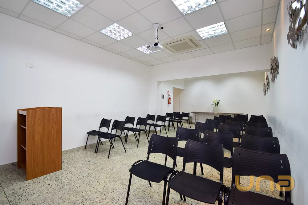- 2 salas de reunião com tamanhos variados e divisórias acústicas;