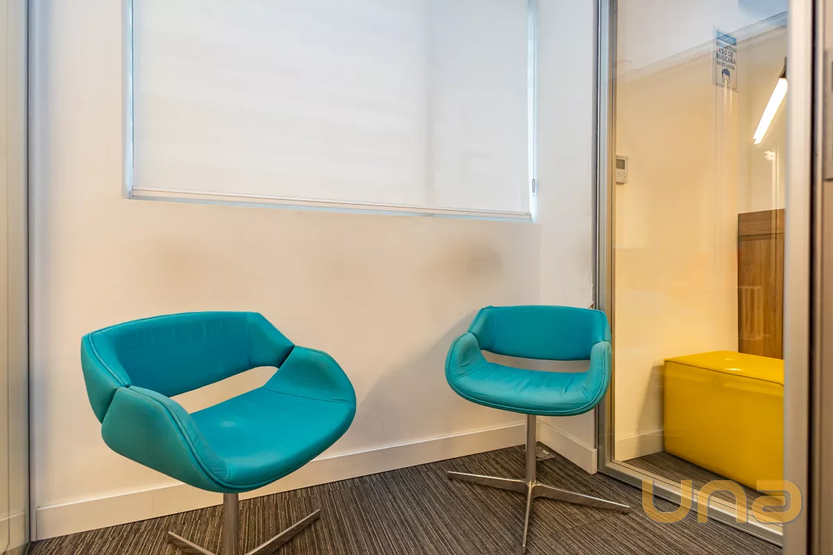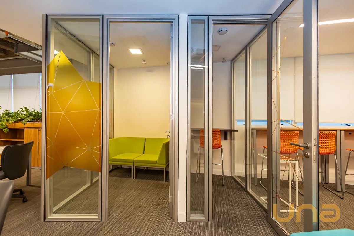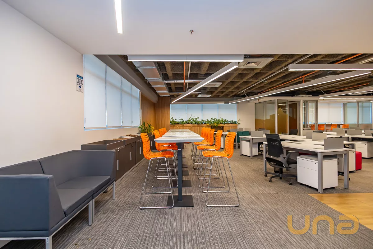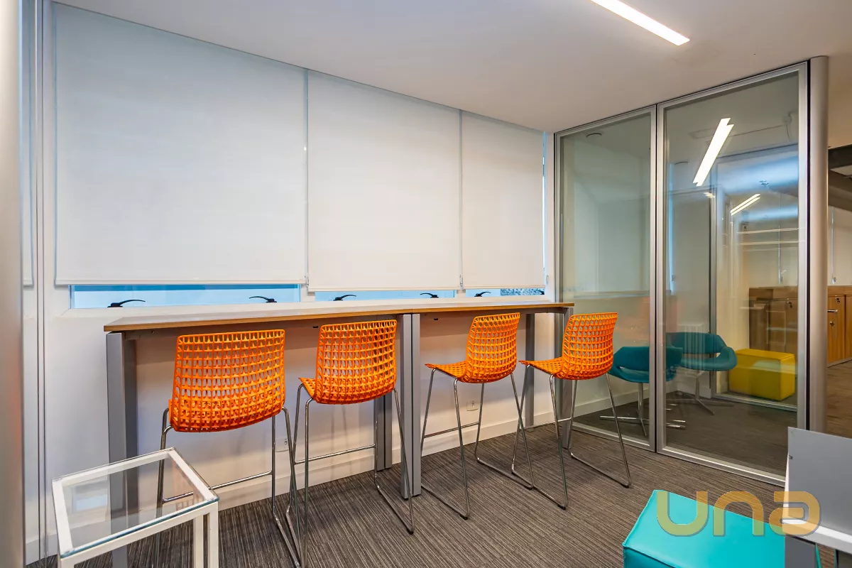 - 2 salas de reunião com tamanhos variados e divisórias acústicas;