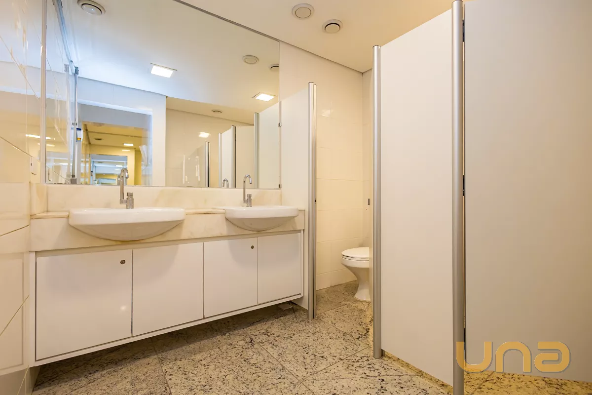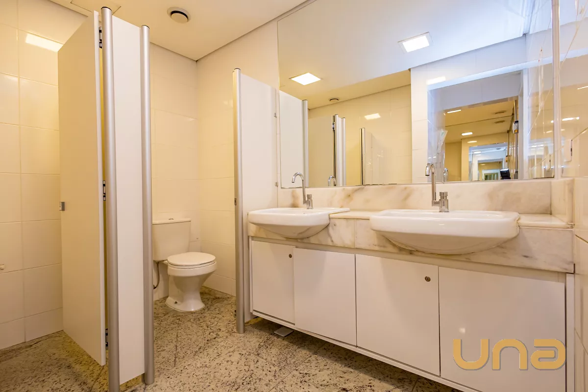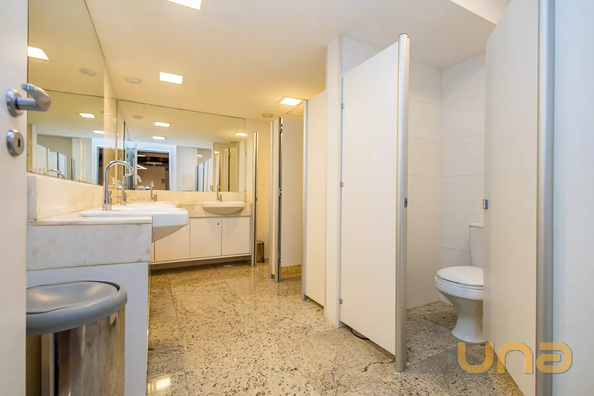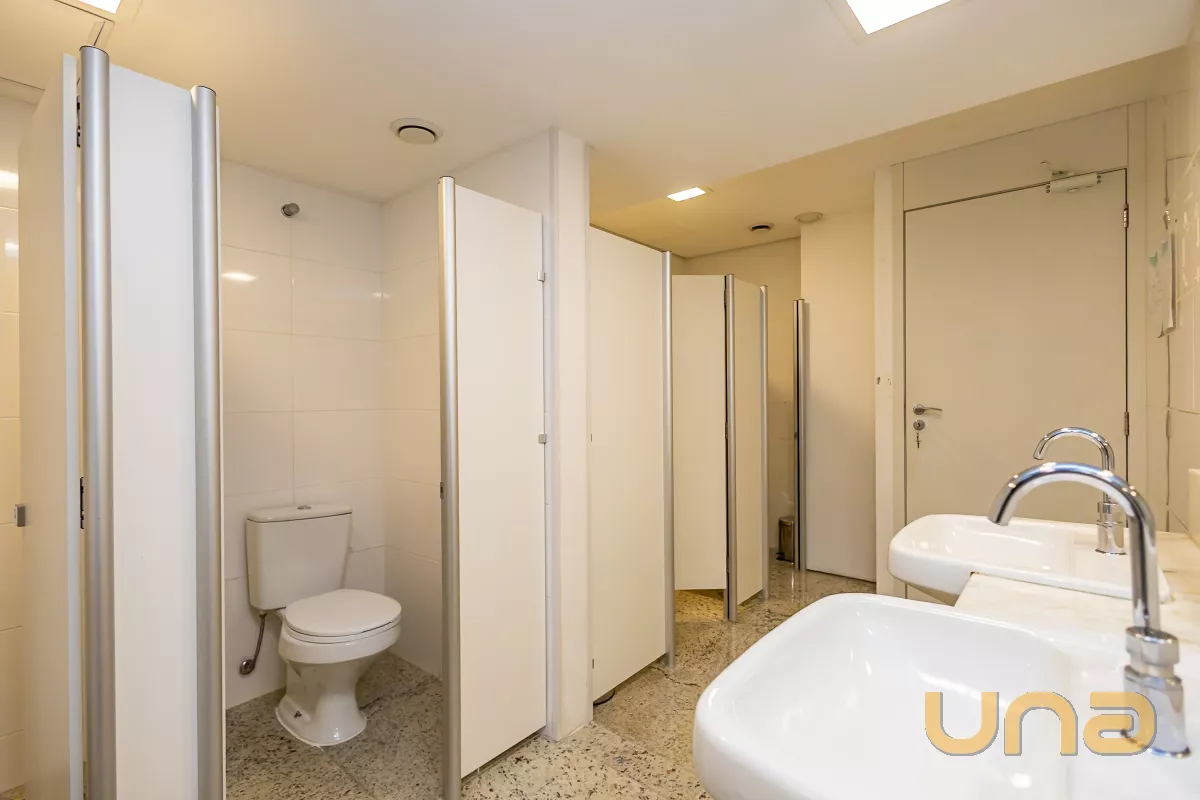 - 2 banheiros com 4 cabines cada, sendo um masculino e um feminino;