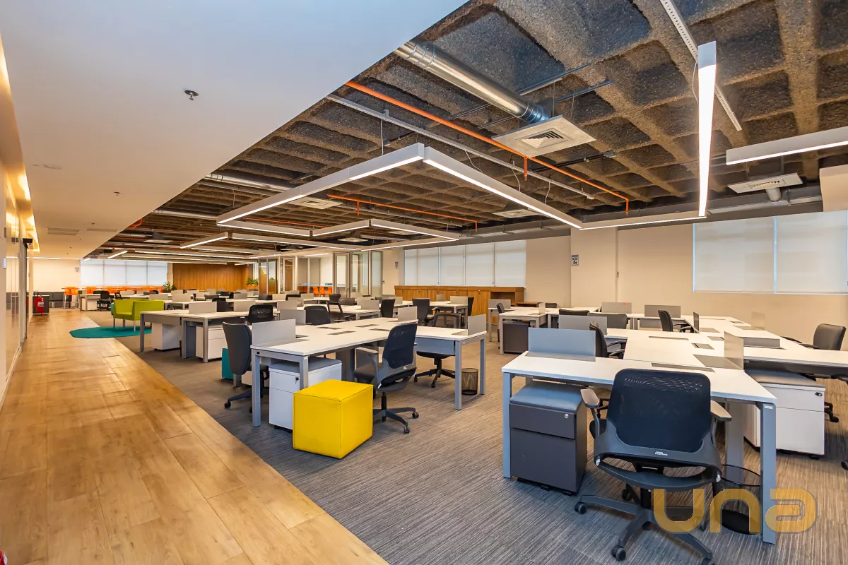 - Vão livre com, aproximadamente, 40 estações de trabalho