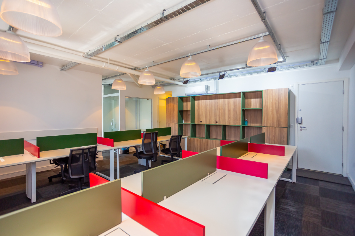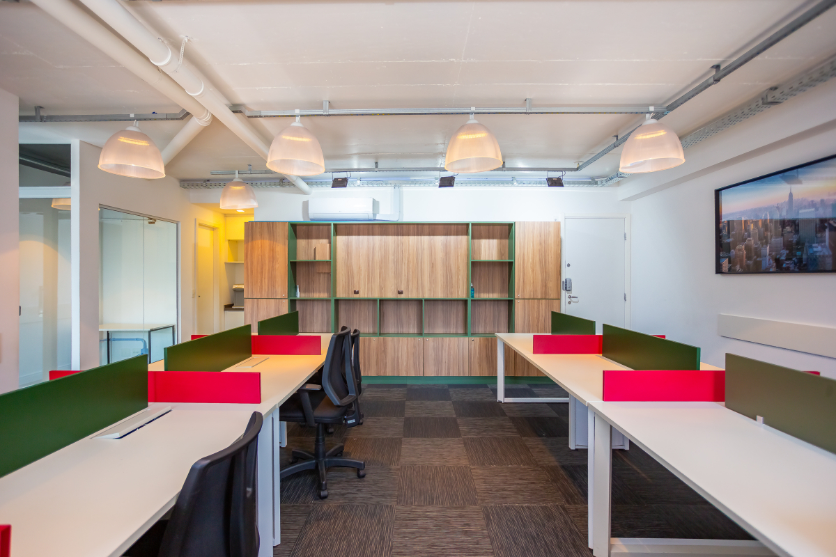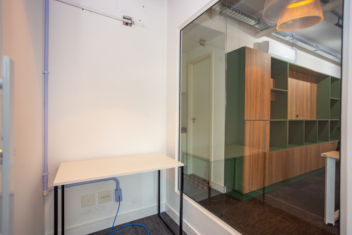 Detalhes: Conjunto comercial com 71,72 m² de área privativa, dividido em 5 salas com ar condicionado, piso em porcelanato e 2 lavabos - Mobiliado.