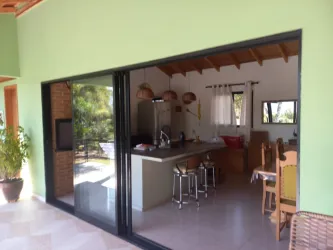A área externa conta com diversas árvores frutíferas, horta, galinheiro, depósito de madeira para armazenamento de ferramentas, além de 4 painéis solares. O imóvel dispõe de 2 poços artesianos, piscina, quadra de vôlei, jardim, jacuzzi, aquecimento a gás e portão eletrônico.