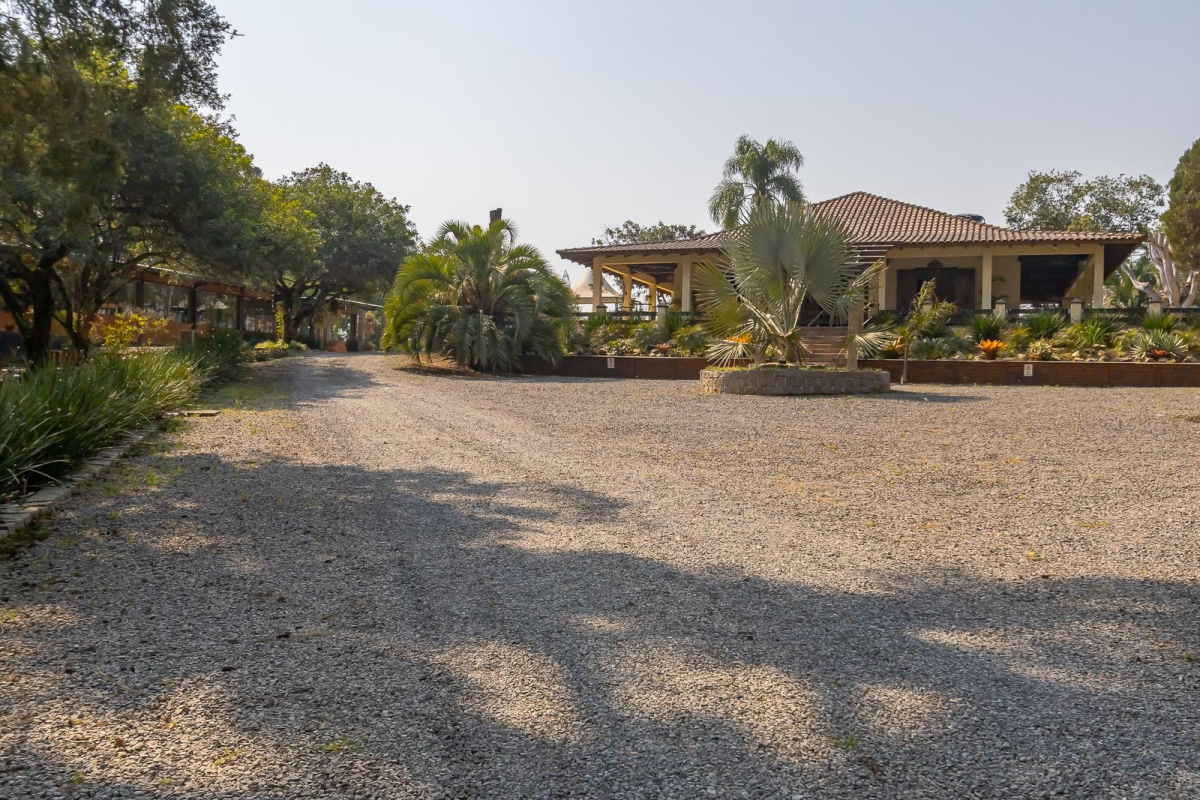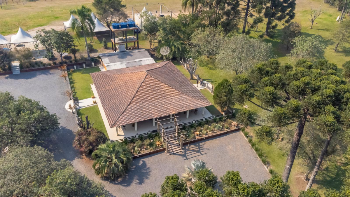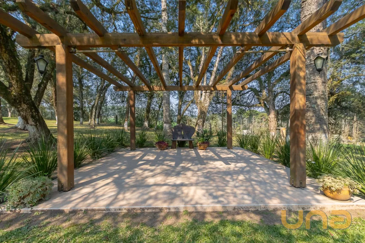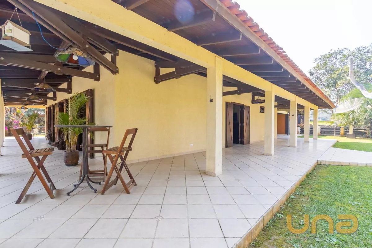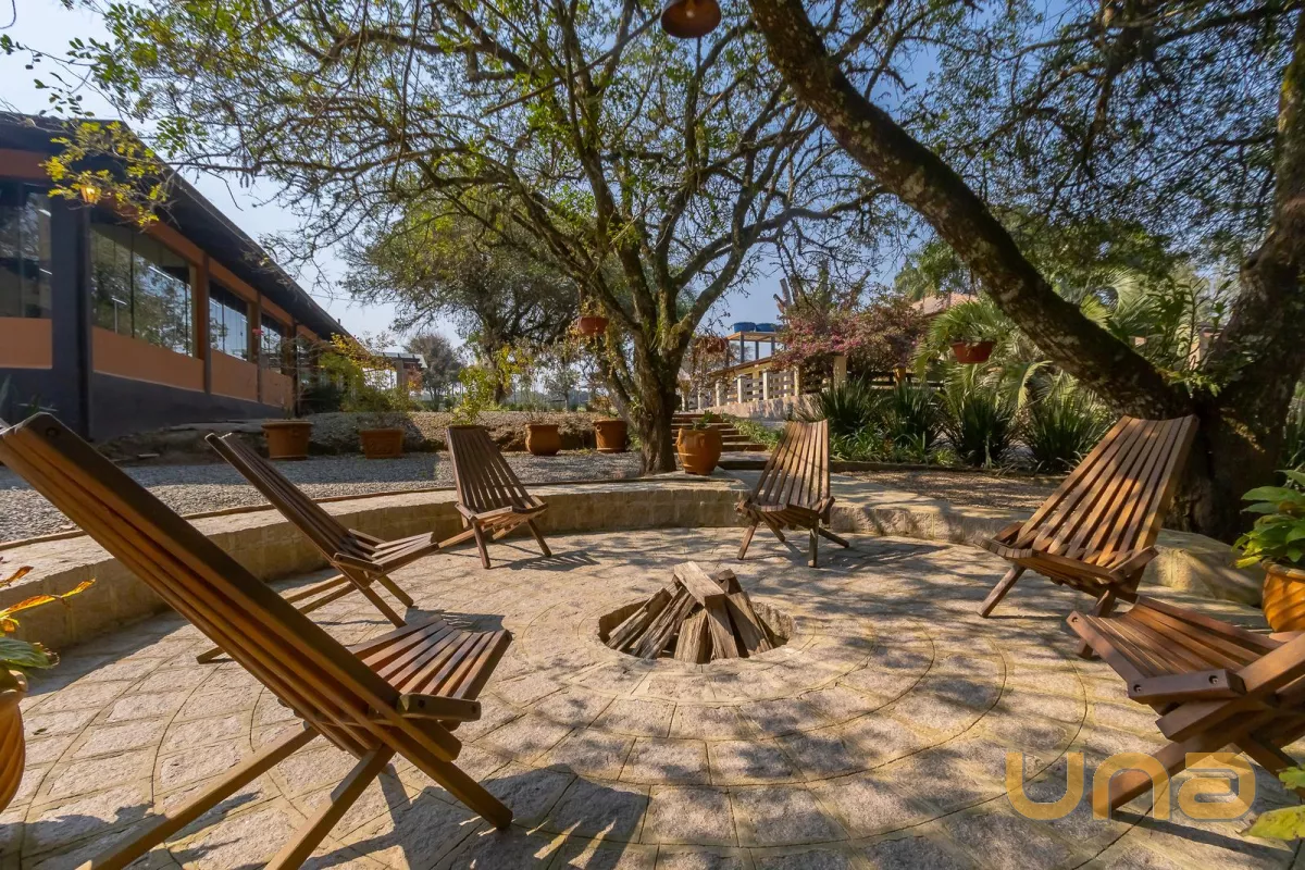 Área com 37.906m² totalmente cercada, praticamente plana, com lindos jardins arborizados, 2 tanques, viveiro com aves exóticas, poço artesiano 120m de profundidade, casa principal, salões de eventos, iluminação subterrânea, gerador, dentre outros diferenciais detalhados a seguir.