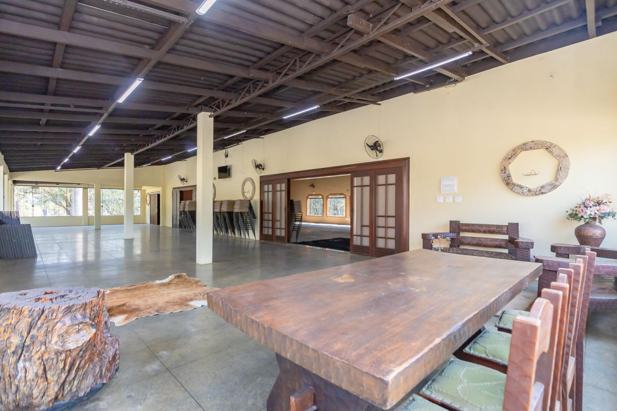 Localizada numa região de fácil acesso a apenas 3km da Br277, 25km de Curitiba, em região de belas chácaras. Possui alvarás liberados para diversos tipos de eventos e com 8 CNAE´S liberados. Eletrificação trifásica. 2 entradas, com portões eletrônicos.