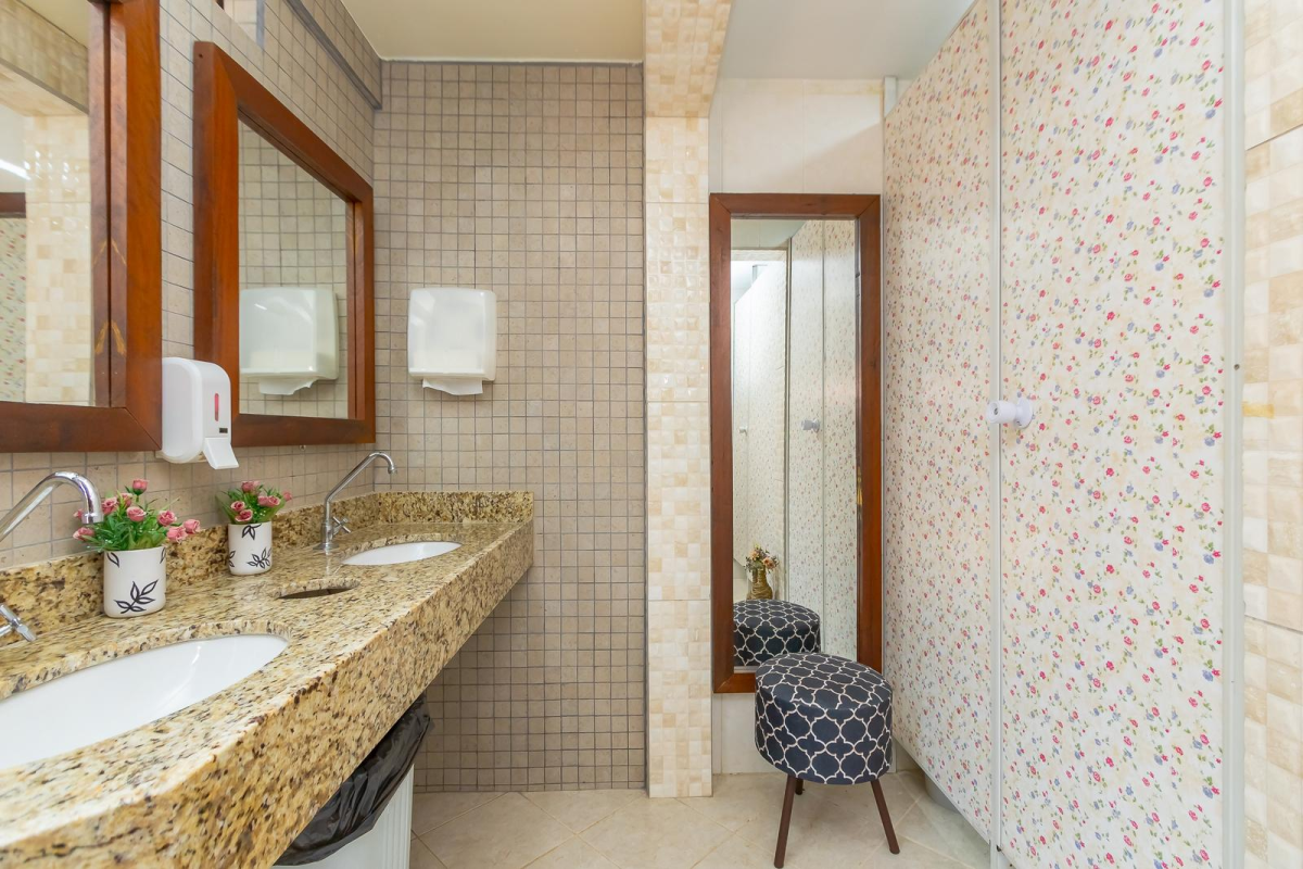 Salão de festa com 2 ambientes 610m², acomoda até 300 pessoas. 2 cozinhas, 5 banheiros, lareira, wifi.