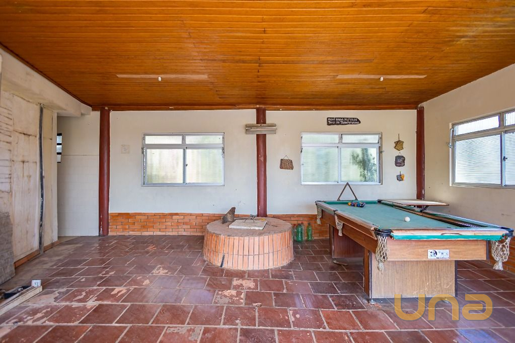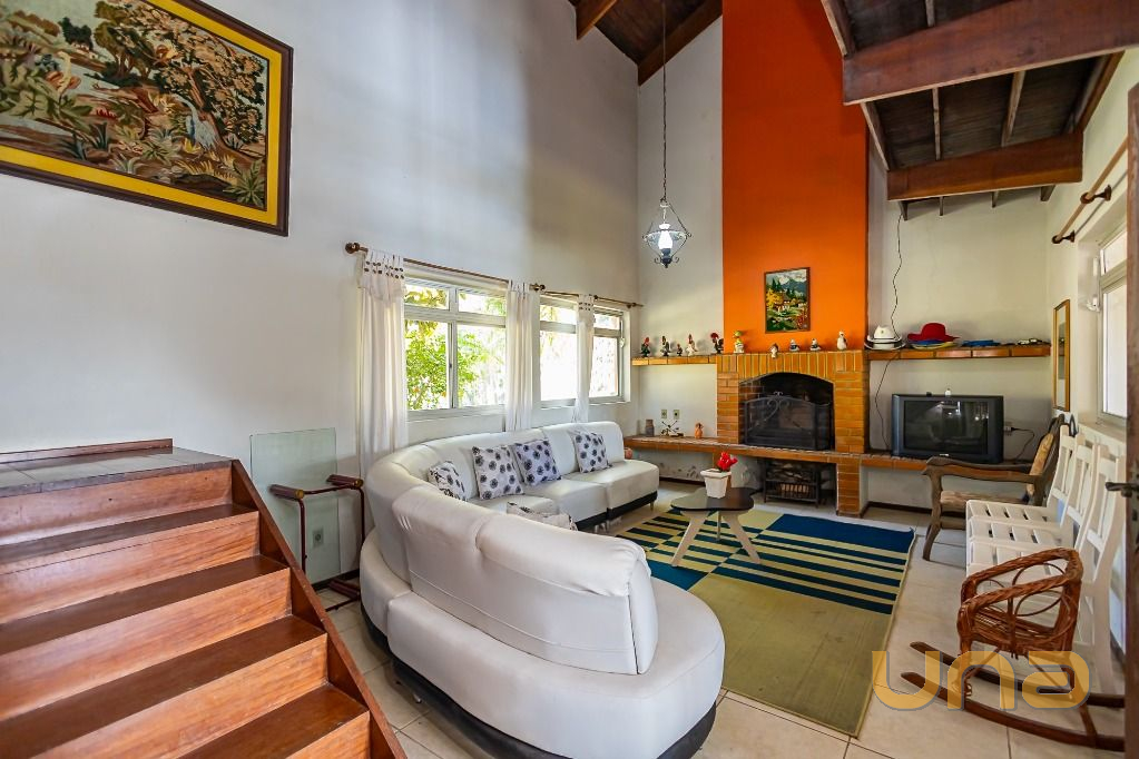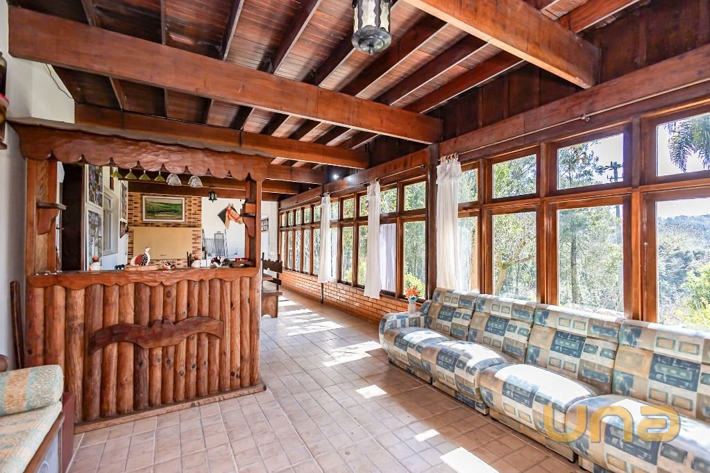 Com salão amplo em dois ambientes com churrasqueira, dois banheiros com linda vista, Sala ampla com lareira, cozinha com armários