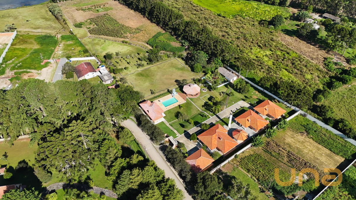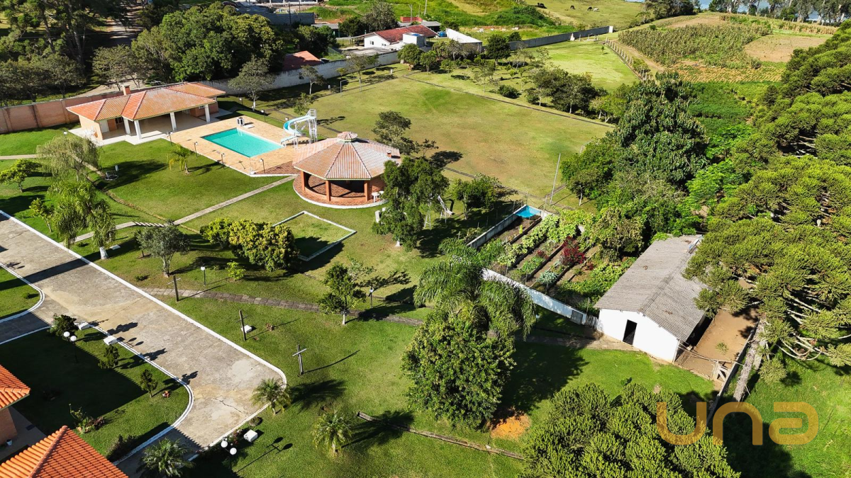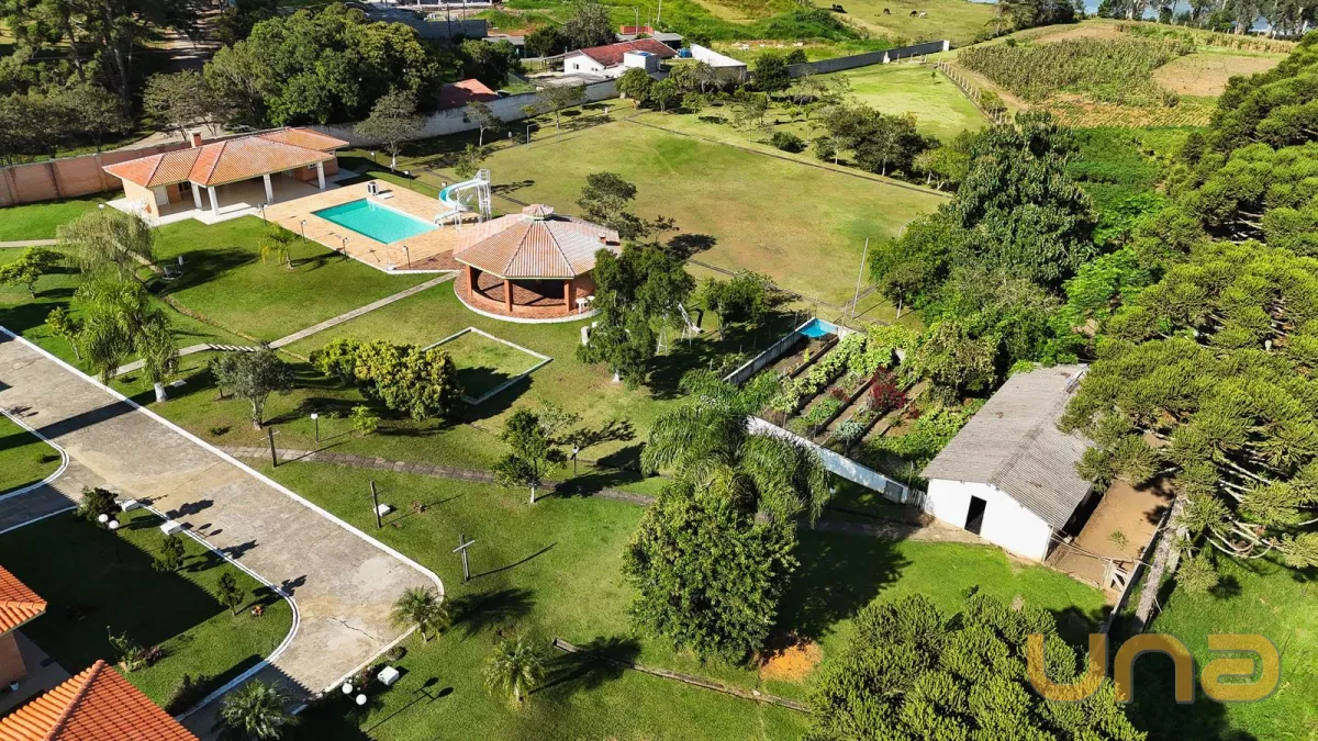 Área de lazer, piscina, quiosque com churrasqueira e forno de pizza, salão de festas com churrasqueira, campo de futebol, pista de caminhada. Com 22.961,80m² de natureza, com hortas, plantações de grãos, pomares, galinheiro e depósito. Segurança e tranquilidade caseiros de confiança há mais de 10 anos no local.