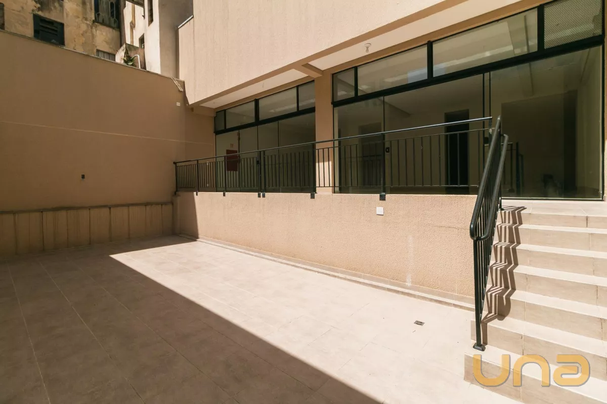 Imediações: Praça Osório, Hotel Trevi, Biblioteca Pública do Paraná. Descrição: Excelente loja térrea, em região central, nova, ampla e em vão livre. Com piso todo em porcelanato, 2 portas de aço (sendo 01 automatizada), vitrines em vidro temperado, 2 banheiros (masculino e feminino), pé direito de 3,50 metros. Vários pontos com infraestrutura para ar condicionado. Espaço no fundo para ampliação. Imóvel ideal para restaurantes, lojas, escritórios e empresas em geral. Não tem taxa de condomínio (água, luz, telefone são individualizados do edifício residencial).