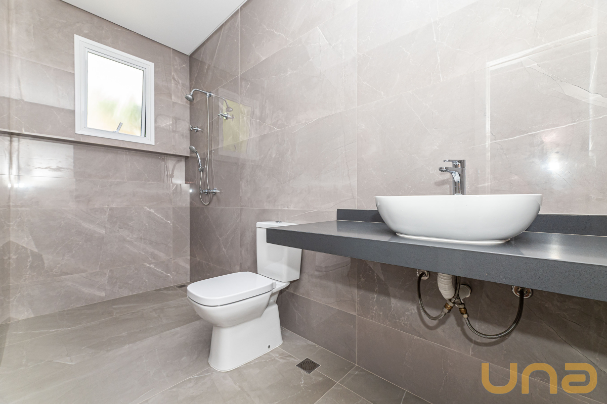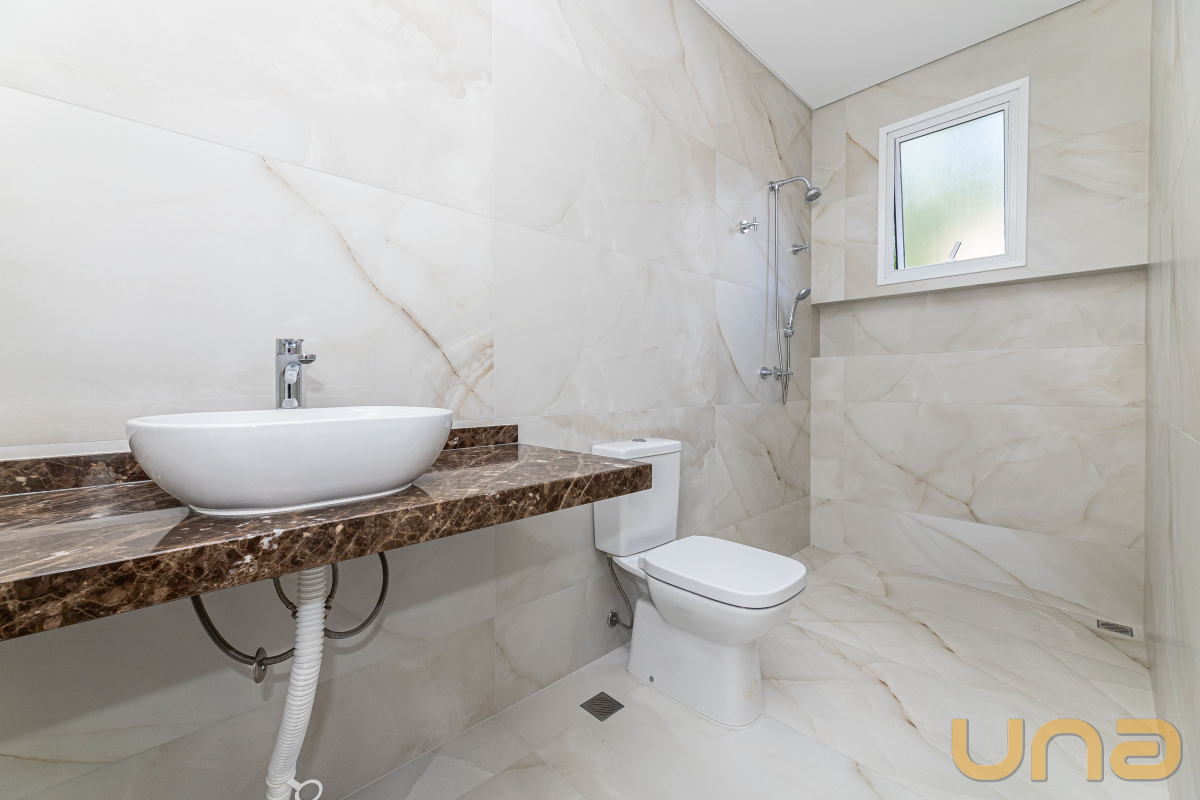Com 3 suítes amplas e iluminadas, esta residência é um convite ao conforto. As salas de estar e jantar são integradas e convidativas, perfeitas para receber amigos e familiares. A cozinha é prática e integrada. Adicionalmente, há um lavabo e um banheiro de serviço.