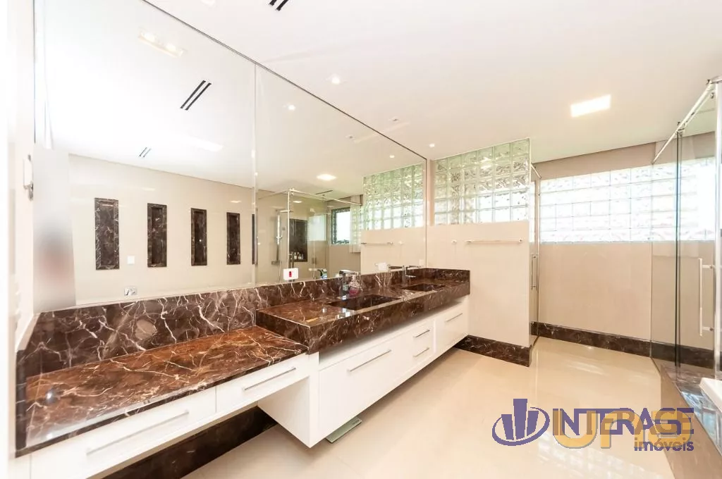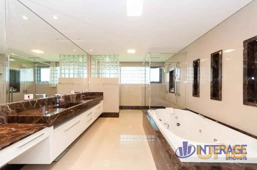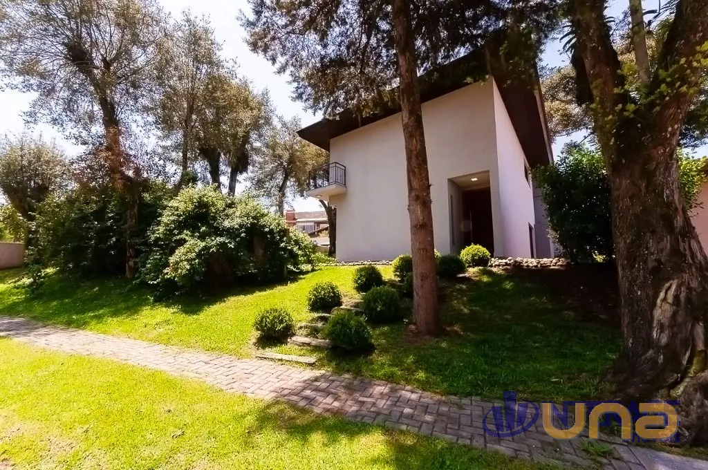 -Residência com alto padrão de acabamento, contendo calefação marca italiana e Energia Fotovoltaica com 36 placas de 450w, cisterna de 8mil litros para água do jardim e descarga, banheiros dos quartos com piso aquecido só falta reativar, a casa está preparada para ar condicionada central. Pisos da casa de madeira maciços da Indusparquet