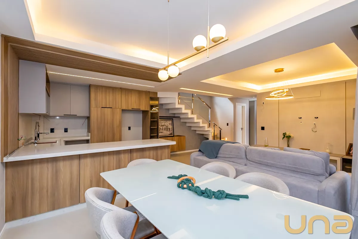 Este sobrado triplex oferece conforto e praticidade em uma localização privilegiada. A área social é composta por uma ampla sala para dois ambientes, integrando estar e jantar, com a cozinha equipada com armários planejados e bancada em granito, ideal para o dia a dia.