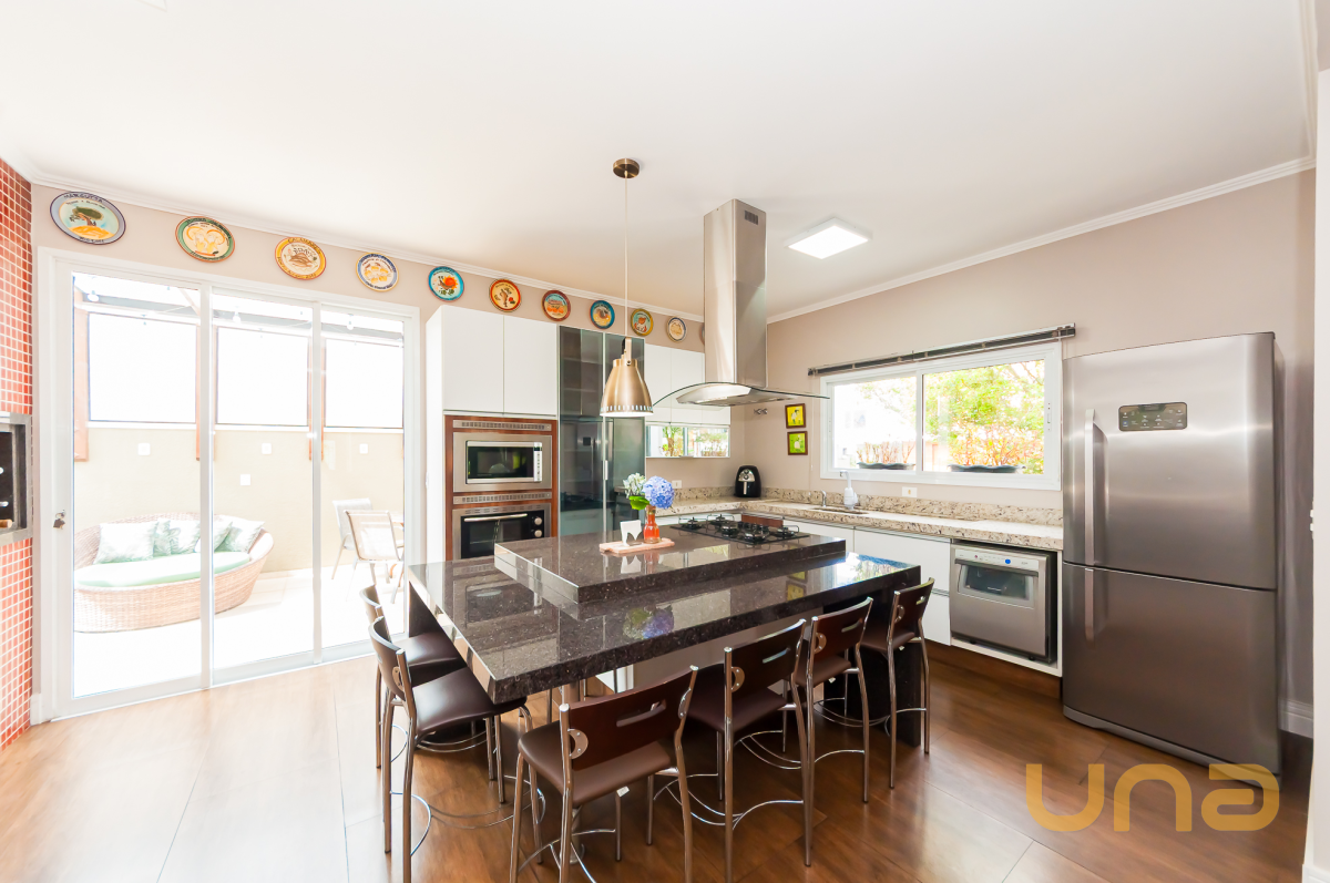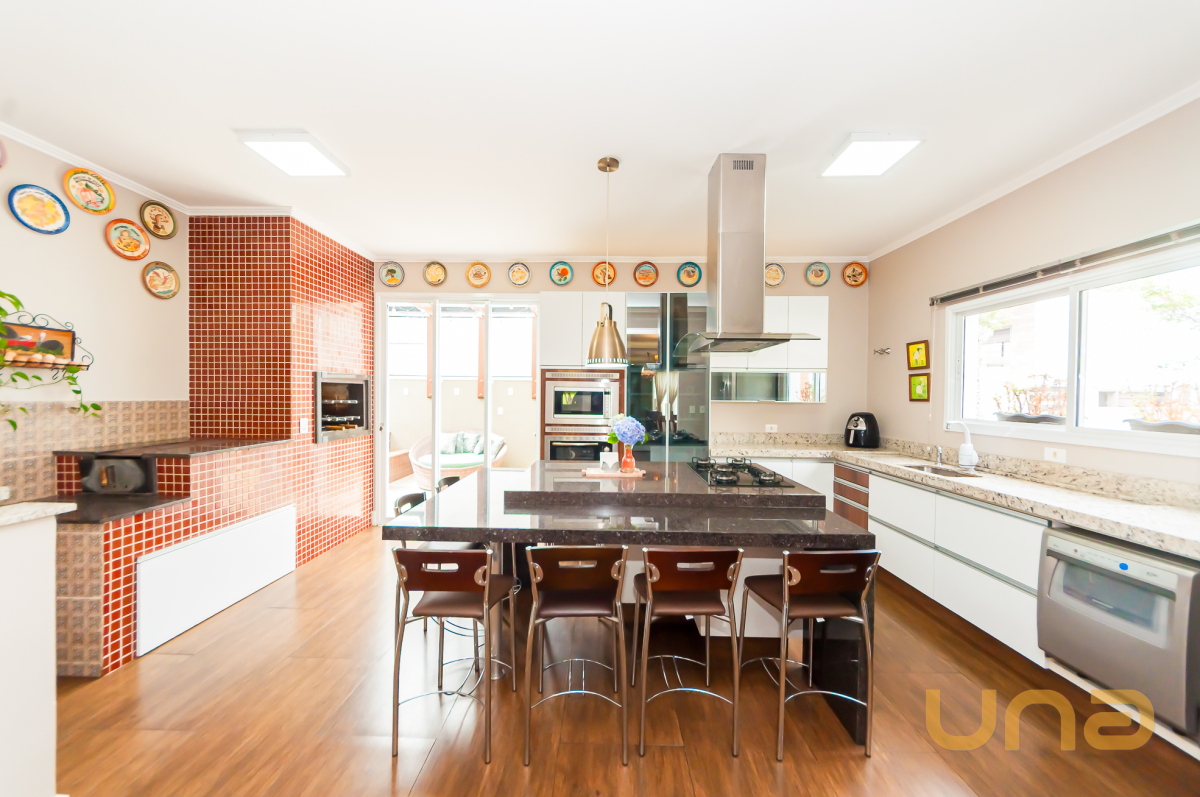 - 1º piso terreo: Sala espaçosa com conceito aberto de acesso direto para cozinha (ar condicionado 30 mil btus), 01 quarto/escritório, banheiro social, cozinha completa com armários, pia e ilha toda em granito, churrasqueira com espetos giratórios em inox, fogão a lenha e bancada com pia em granito, forno elétrico, microondas, coifa e lavadora de louças, área de serviço com armários (02 aquecedores de 22 litros). E a parte anexo externa com banheira dupla "ofurô" aquecida por sistema elétrico ou a gás, com cobertura em vidro blindex e deck em madeira.