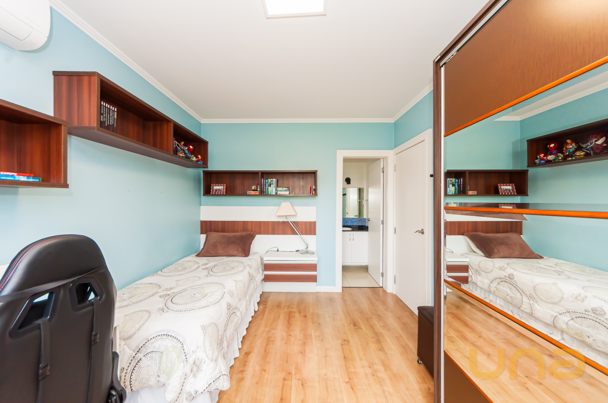 2º piso: 03 quartos com suíte (com ar condicionado em cada quarto), 02 com closet, contém 01 espaço de sala intima, podendo ser transformado em 01 quarto ou escritório.