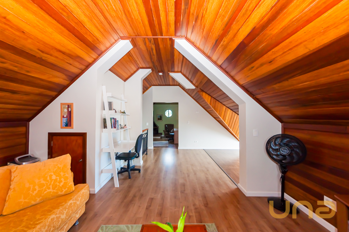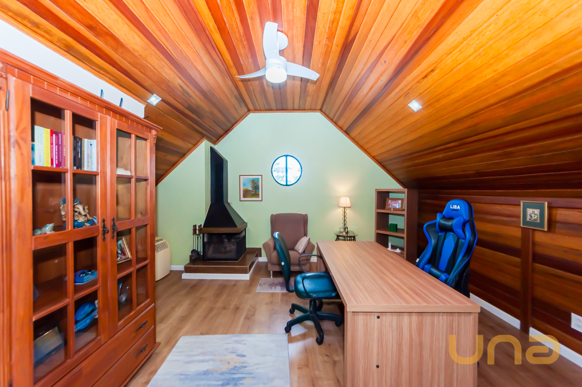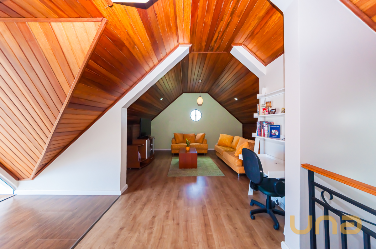 3º piso: Atico espaçoso com varanda, lareira e escritório, podendo separar o ambiente em escritório/quarto ou sala de cinema.