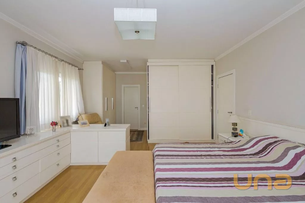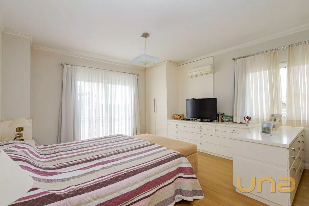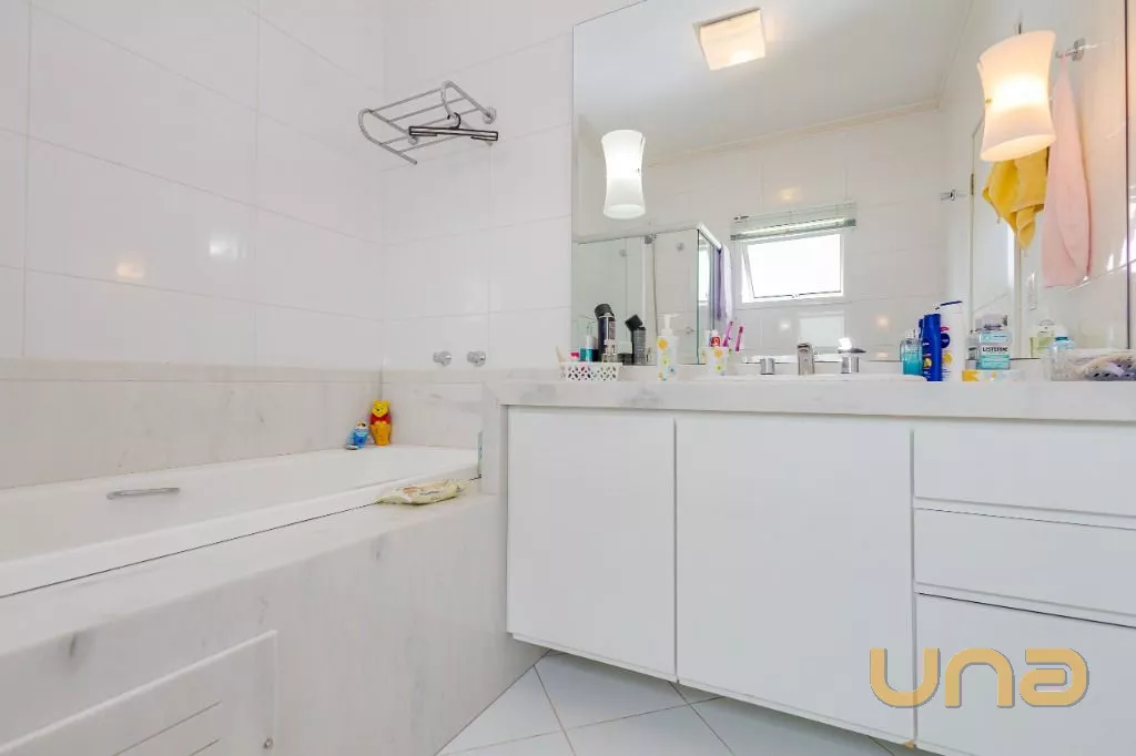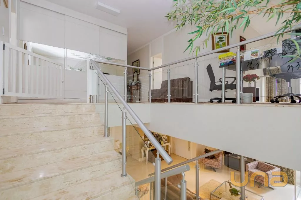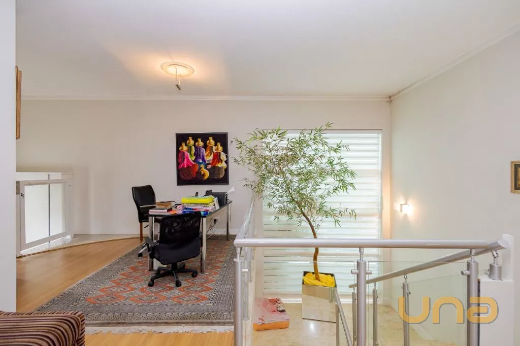 No pavimento superior, o destaque fica por conta da área íntima: são quatro suítes, incluindo uma suíte máster com closet espaçoso, banheira de hidromassagem e sacada privativa. As suítes júnior também oferecem acesso à sacada, há ainda um escritório, ideal para home office ou estudos.