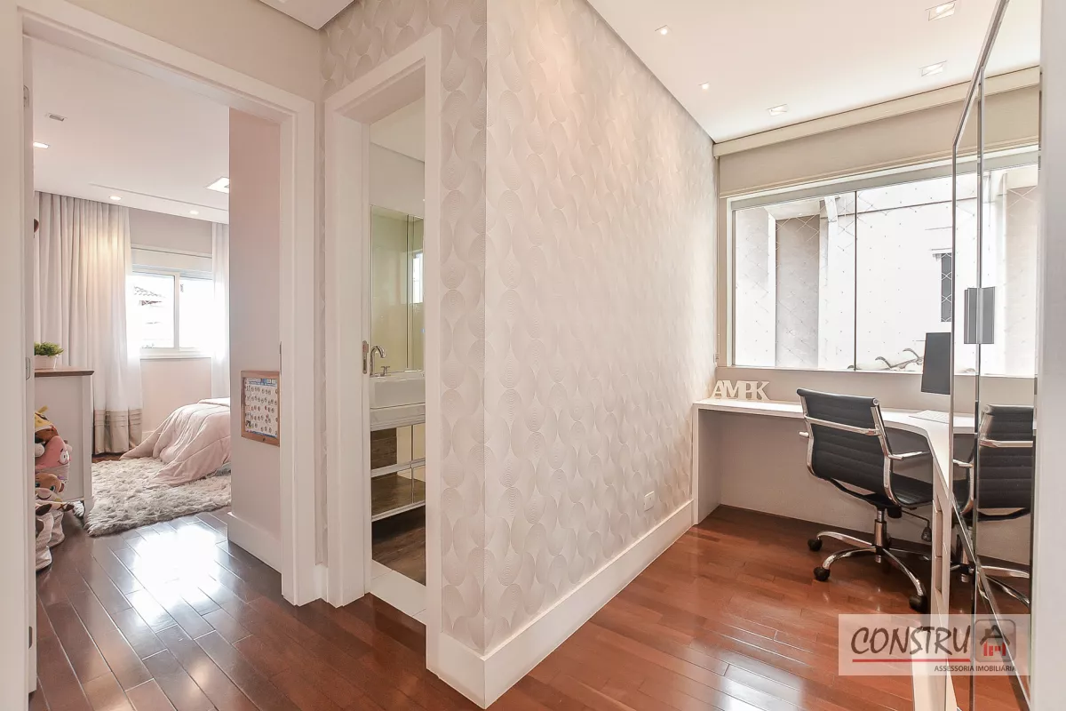 Segundo Pavimento: 03 quartos com piso em madeira. sendo 01 suíte com hidro, closet e ar condicionado. + escritório. São 153 m² privativos, 04 vagas de garagem, sendo 02 cobertas.