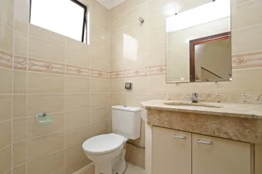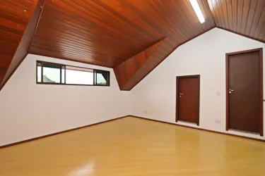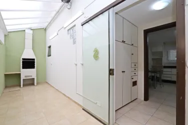 Imóvel com 148,51m² de área construída. A área social conta com sala de estar para 2 ambientes, cozinha com armários planejados e lavabo. Na área íntima, o imóvel dispõe de 3 dormitórios, sendo 1 suíte com armário e sacada, além de banheiro social com box blindex. As escadas em granito complementa o espaço. Há um amplo ático com banheiro social e depósito com prateleiras, oferecendo versatilidade para diferentes usos. Nos fundos, o imóvel possui churrasqueira, cobertura de vidro retrátil automática e área de serviço, equipada com armário. As comodidades incluem, central de aquecimento a gás, interfone, portão eletrônico e garagem para 2 veículos.