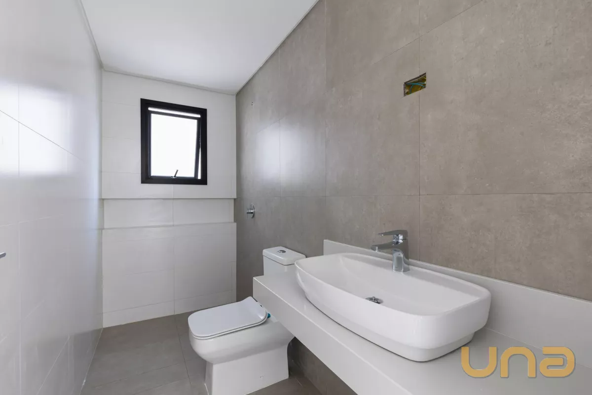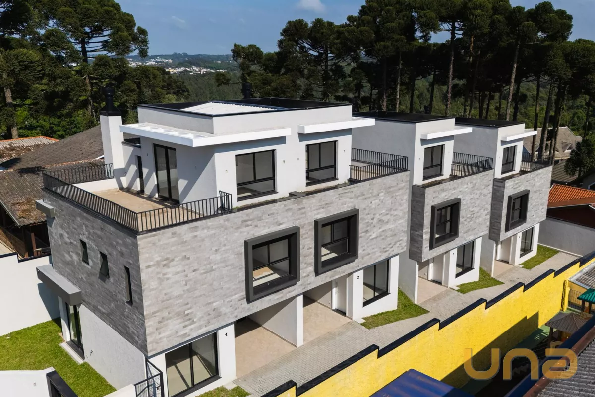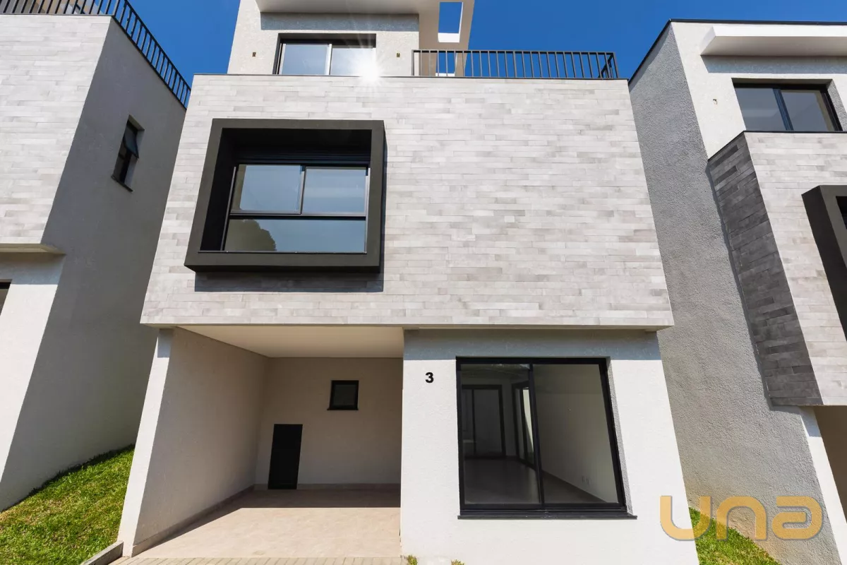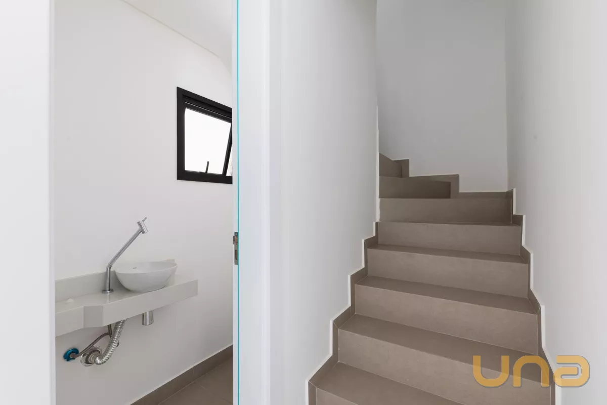 No pavimento térreo contem sala de estar e jantar, lavabo, cozinha, área de serviço e 1 vaga de garagem. O 1° pavimento é composto por 03 dormitórios, sendo 01 suíte, banheiro social. O 2° pavimento possui sala e um terraço externo com 21,68m².